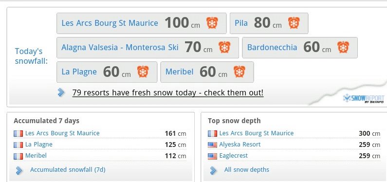 70 cm de chute à Arcs 2000 et 3 m de neige à l'Aiguille Rouge !!!