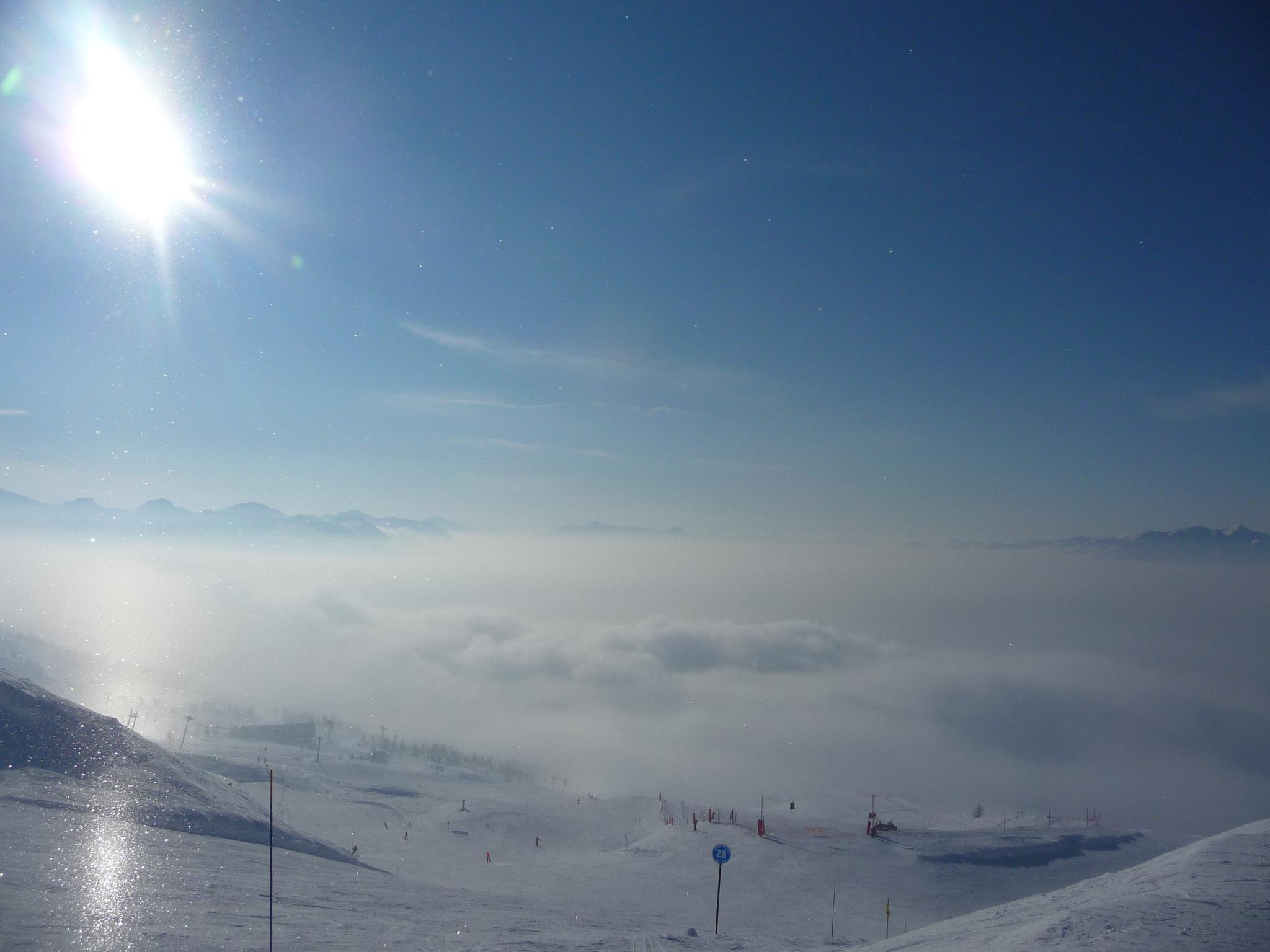 L'enneigement est exceptionnel évidemment et la neige est plutôt bonne partout quand il y as un peu de soleil. Un peu de verglas quand même mai une petite couche de fraiche en règle général. Le soleil réchauffe bien l'après midi, notamment au niveau des cols, pas trop de vent contrairement à l'aiguille de ce coté ci.