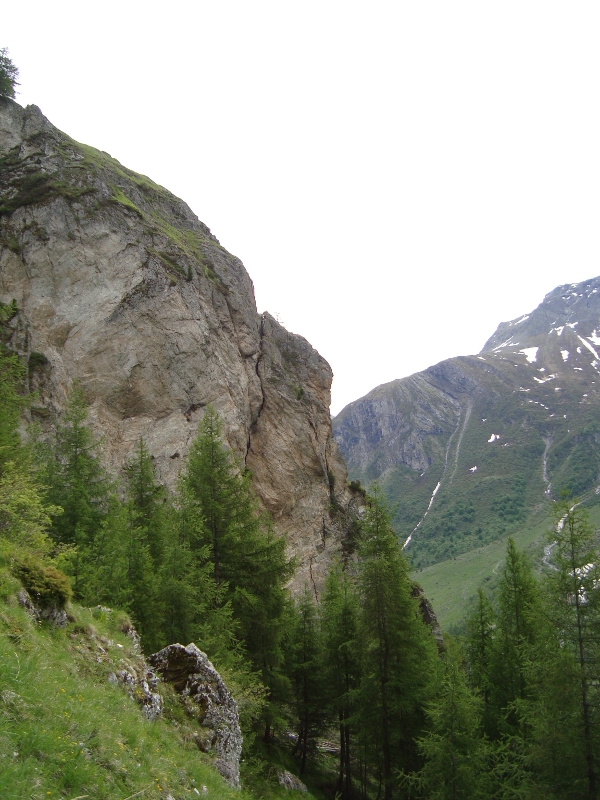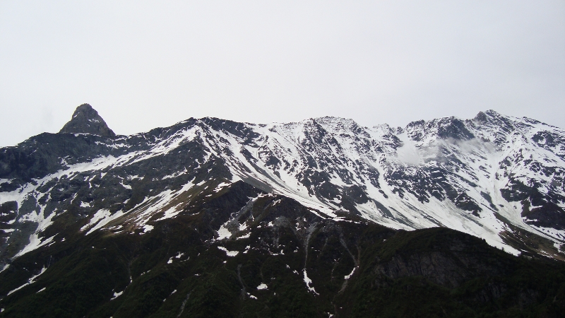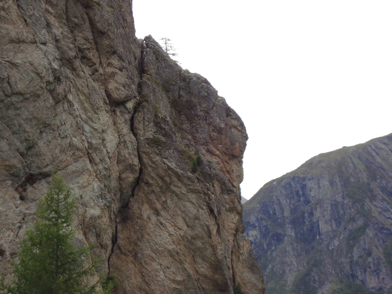 Vu d'en dessous... alors que le soleil semble nous quitter définitivement, le jour blanc s' installe Au sommet de cette arête... un grand pas pour franchir la faille !! Après le sommet, traversée d'une falaise sur une vire équipée, pour rejoindre le sentier Les dégats d'une avalanche, dans le couloir que traverse le chemin de retour... Fin vers 13h. Des nuages commencent à accrocher le "Pourri"... Il tombait des cordes en début de soirée. Faut bien viser pour en profiter, de ce printemps... pourri.