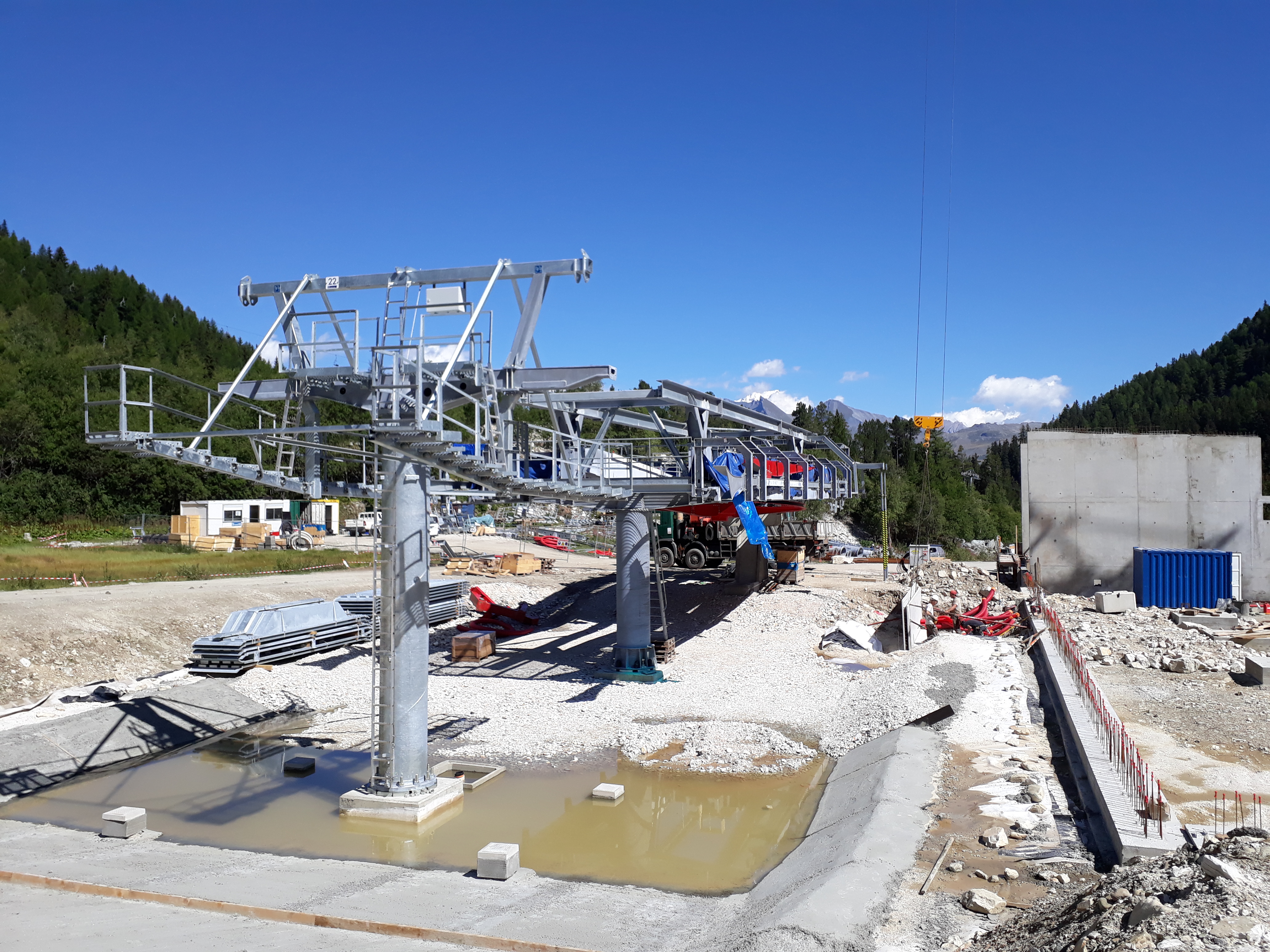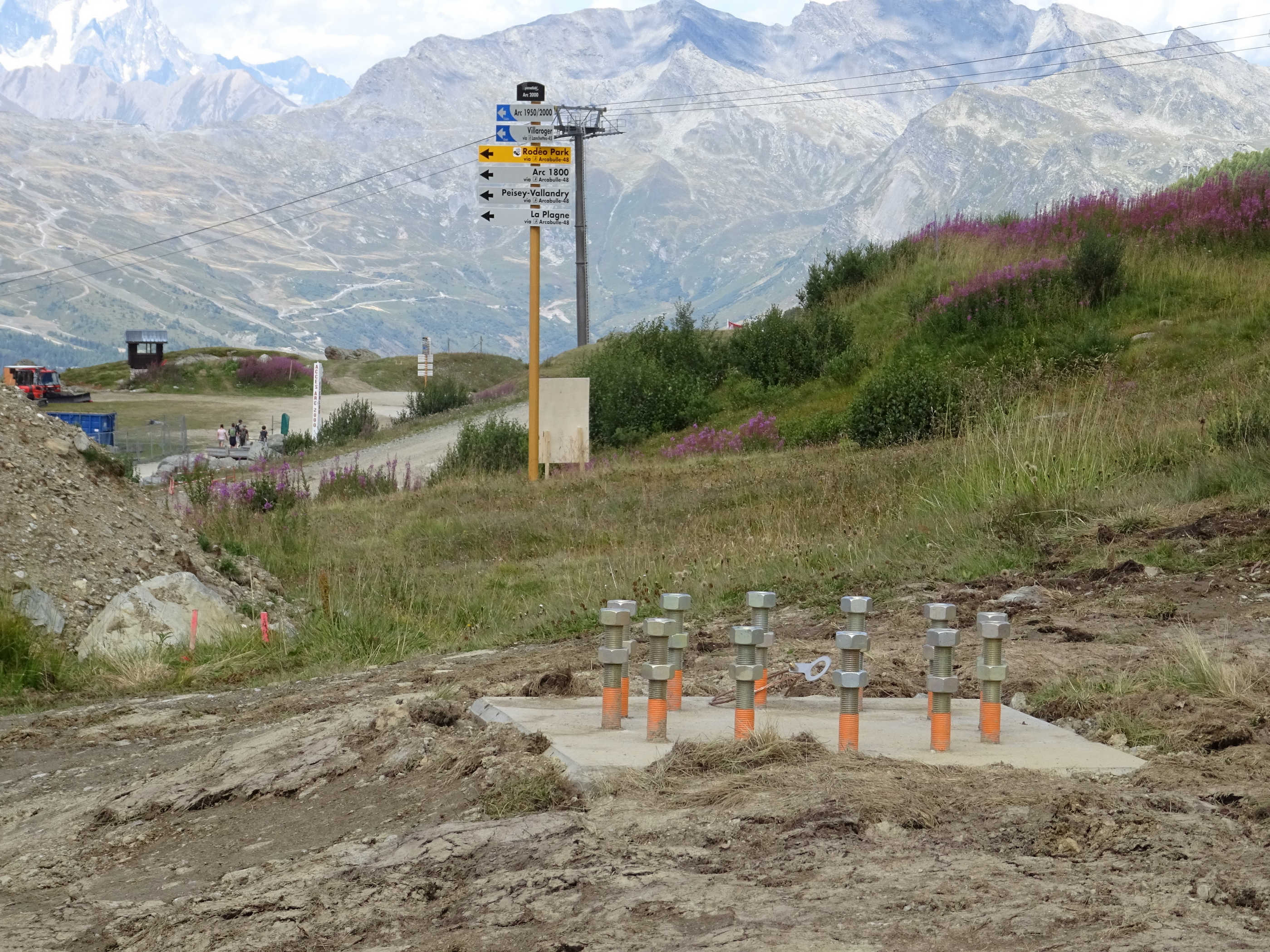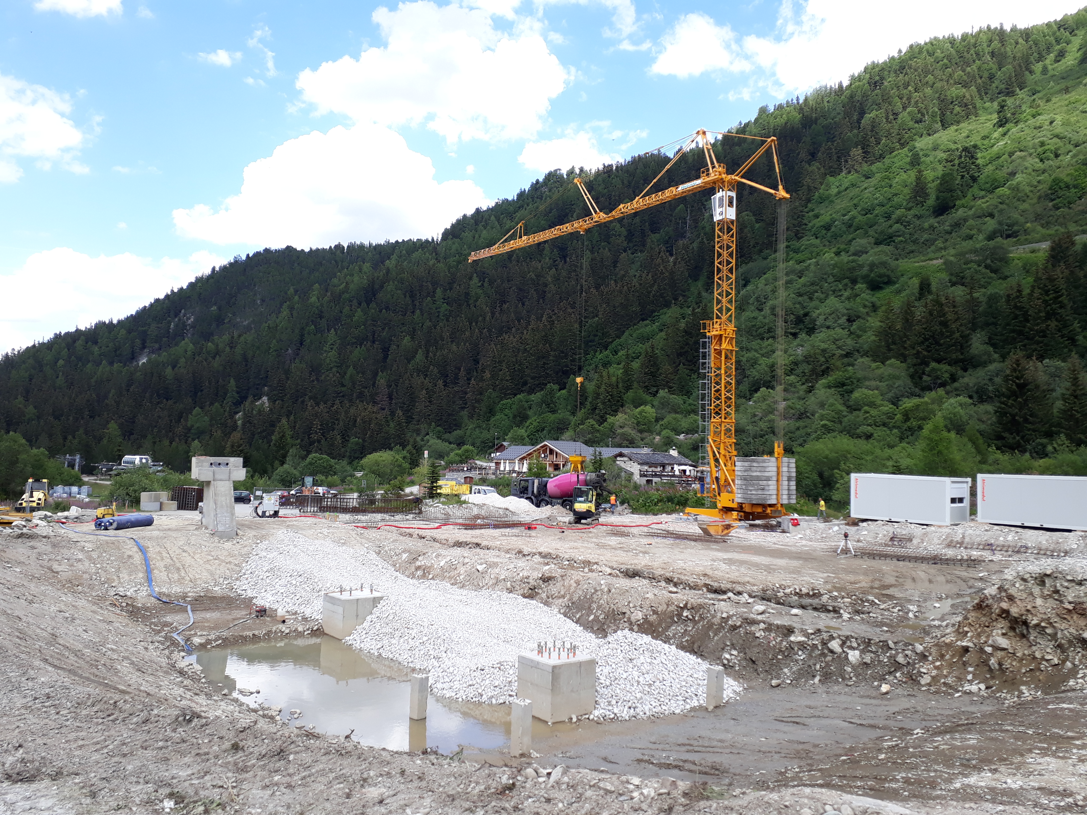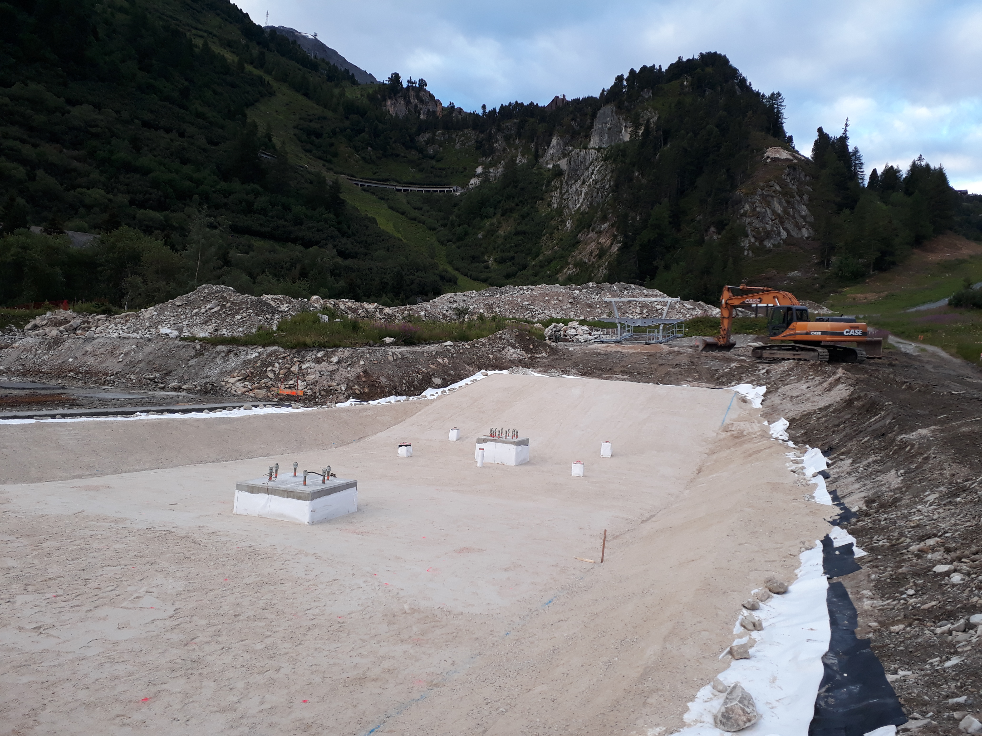 Ligne: Massifs terminés du P22 au P20, P17, P15 au P7, semelles coulées sur P2, P3. P2 Marmottes terminé. Ouverture des trous en cours sur P19,P18,P16 et P4.
