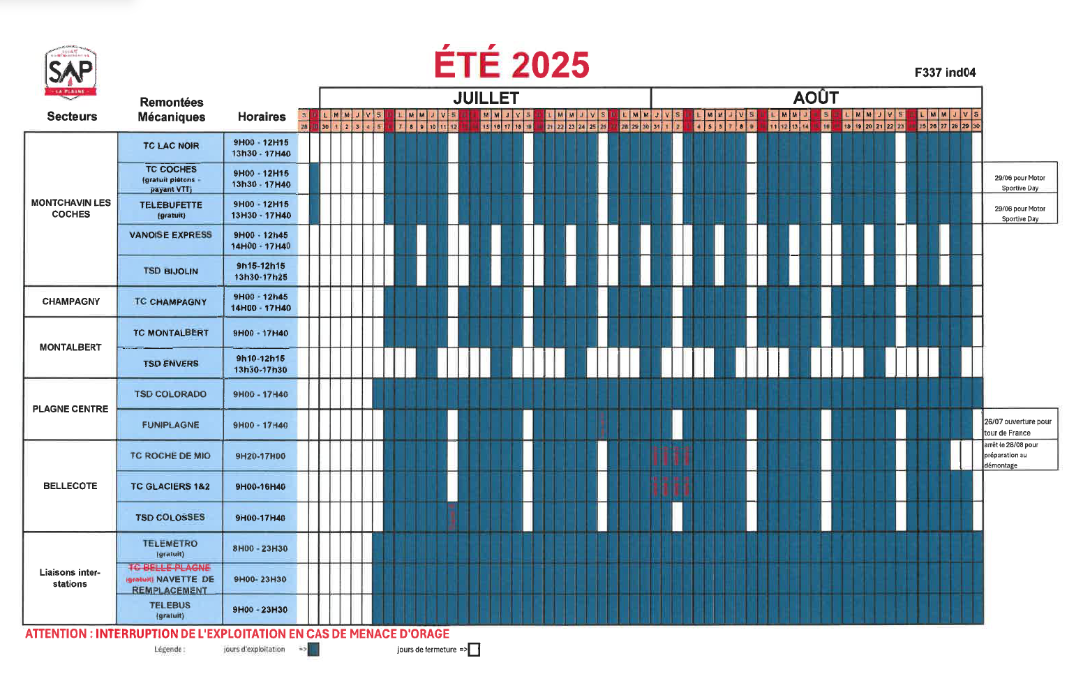 Calendrier d'ouverture des remontées mécaniques cet été: