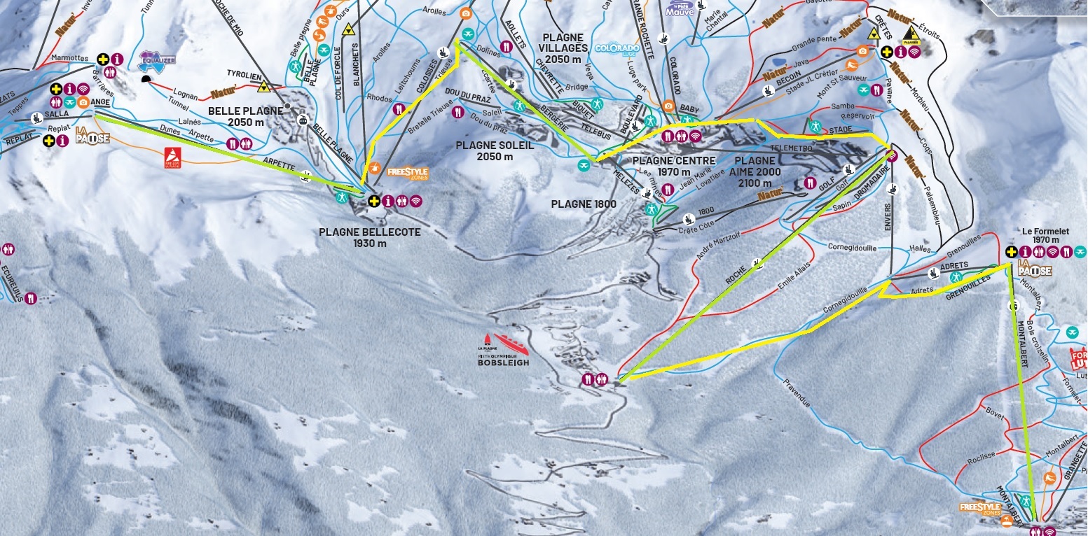 C'est aussi mon avis de passer par la piste lovatière et prendre le ts Mélèzes pour ne pas ramer à Plagne Centre... J'en fais toujours quand je passe par la Roche (suis de la vallée) pour aller à Bellecote... 8)