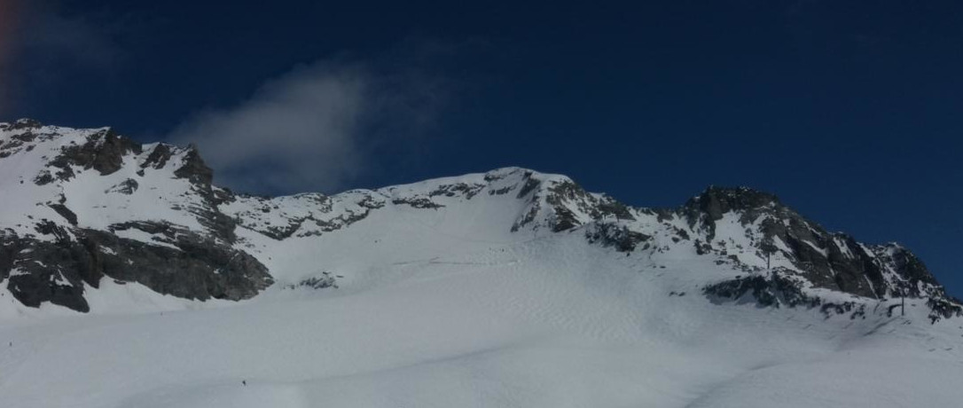 Sauf hier, où le glacier aouvert dès le matin permettant de bénéficier de la chute de 10 cm de la nuit. Un ski fabuleux avec le soleil qui s'invite dès 11 H.