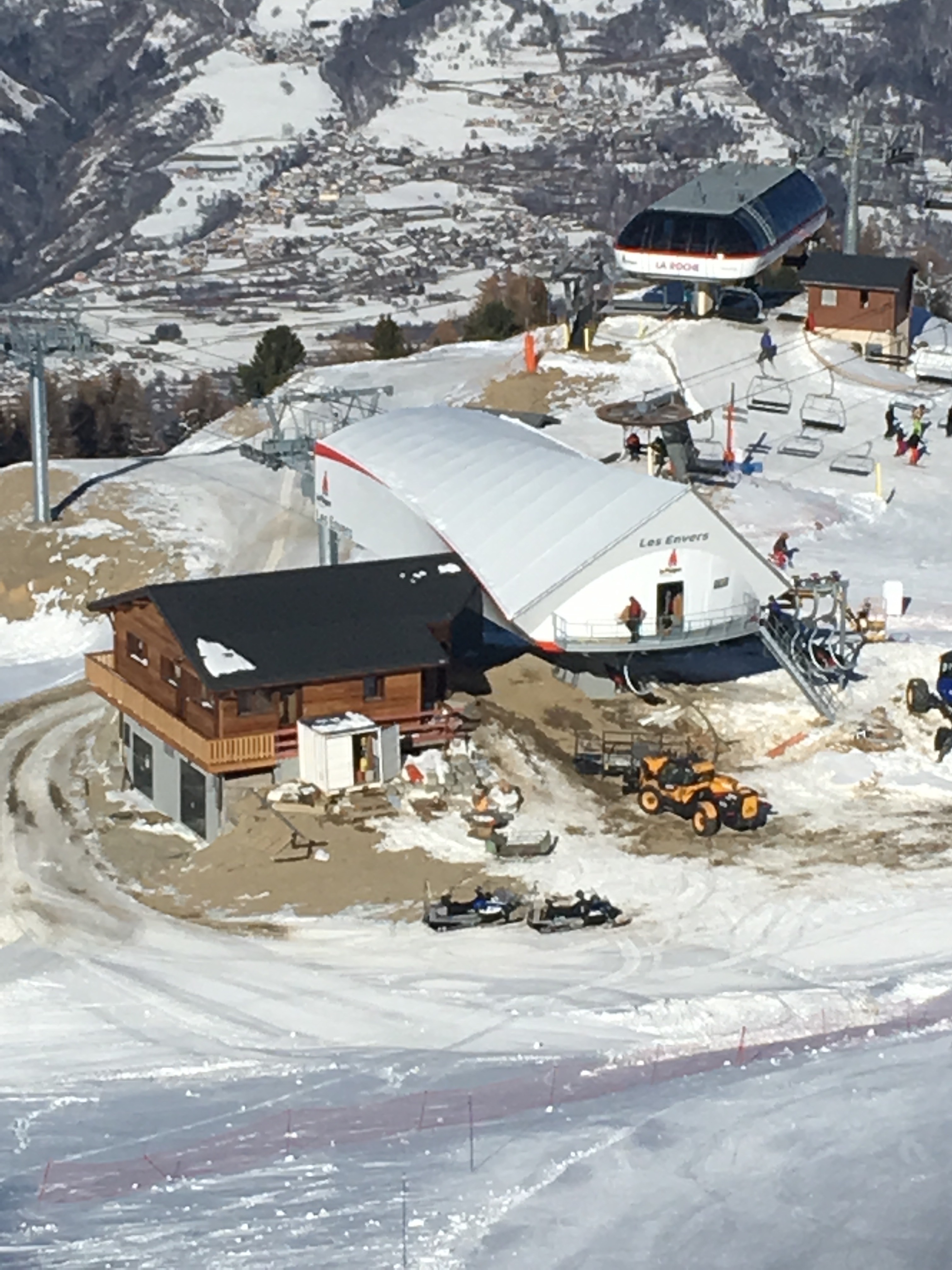La gare d'arrivée vue d'en haut, il y a du personnel sur le chantier mais apparemment ils ne bossent pas sur la mise en place des sieges