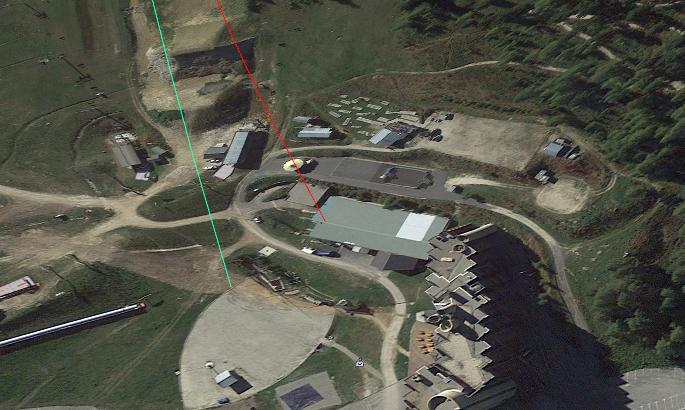 Il n'y a pas de place pour le départ sauf à le remettre au même endroit; mais cela implique de couper Les Colosses... (il ne passerait pas au dessus des Blanchets dans ce cas là). Peut-être possible si cela monte très rapidement, je ne sais pas. Ca permettrait peut-être de conserver une partie du bâtiment.