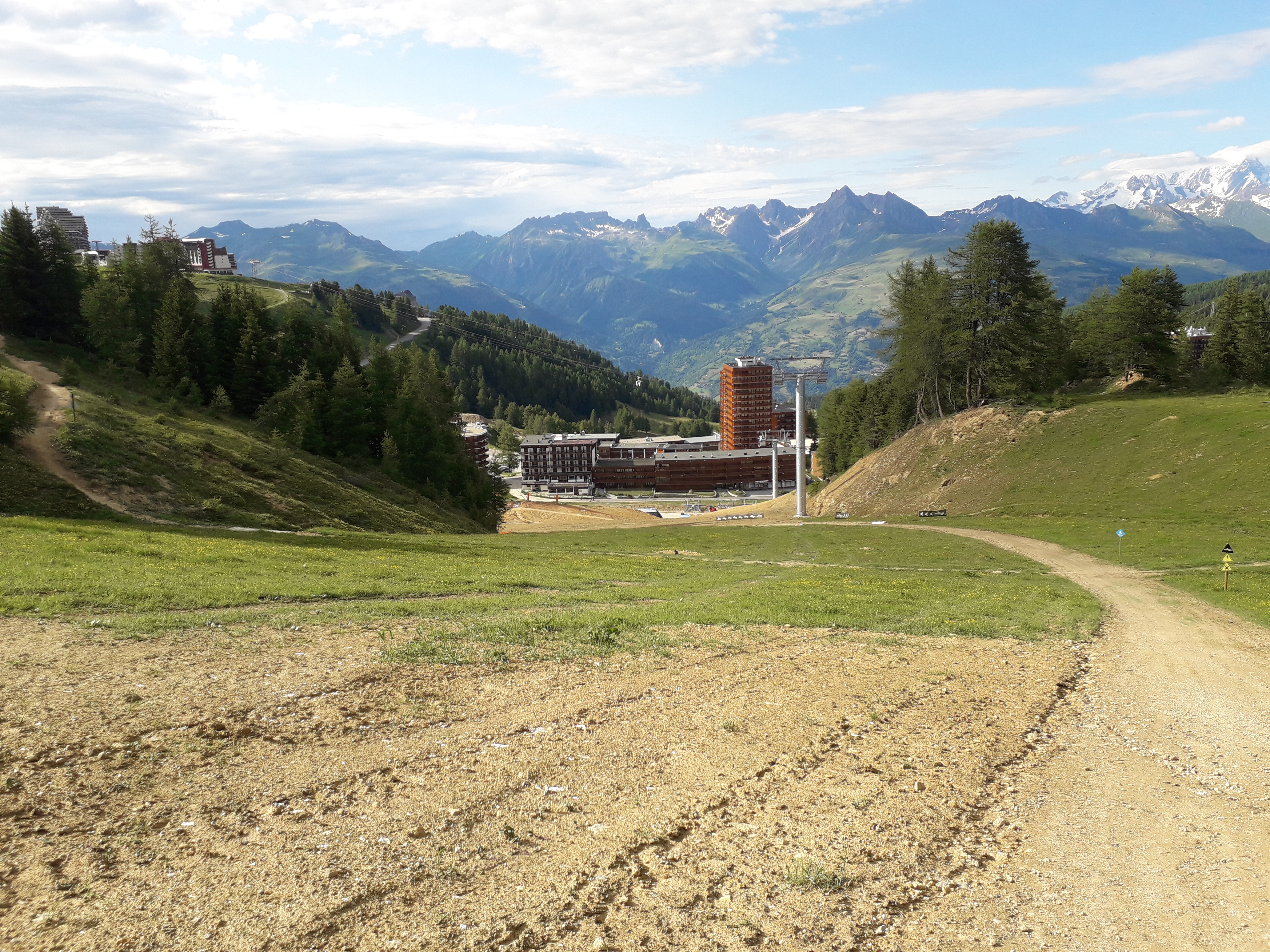 A propos, du reprofilage de cette zone, il y a désormais une marche d'environs 6 ou 7 mètres minimum entre la piste venant du front de neige de plagne Village (en bas) et la piste venant de Bergerie/Colosse (Bride ?).