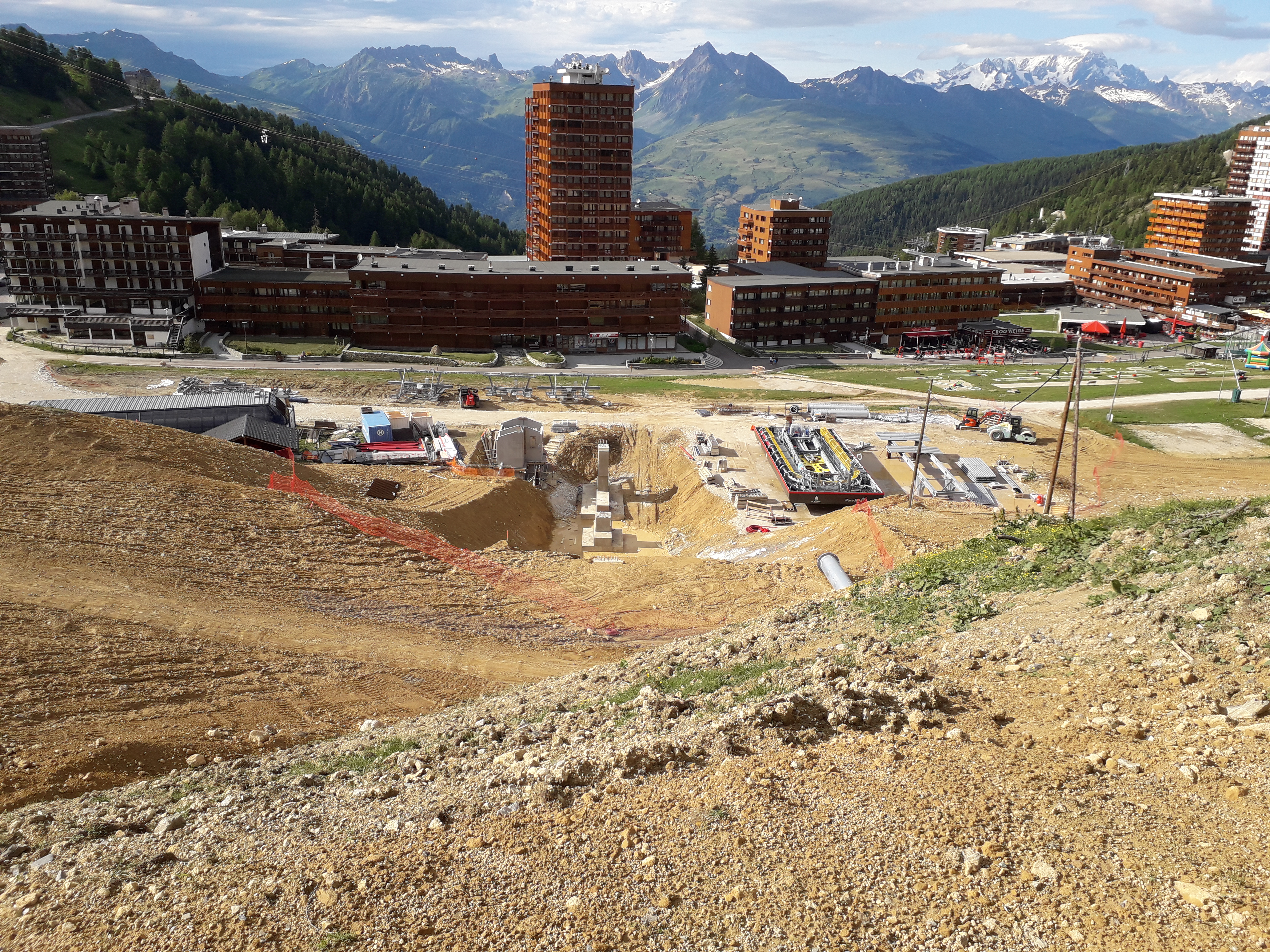 Je n'ai pas vu de début de montage de la structure de la gare d'arrivée (il y a bien une seconde structure en cours de montage à Plagne centre mais je pense que c'est une partie de la gare de départ).