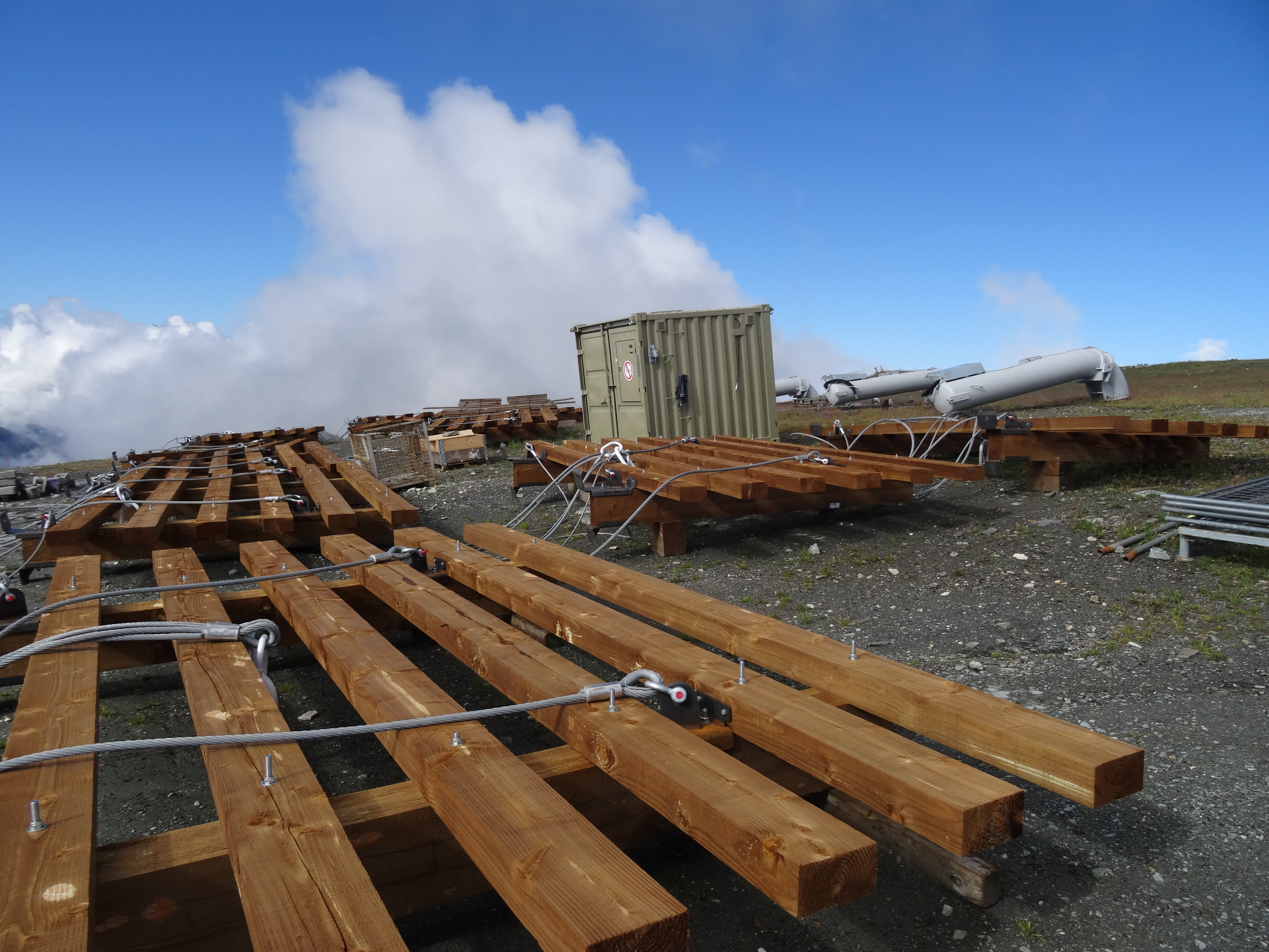 Effectivement, j'avais déjà photographié en juin dernier l'arrivée de nouveaux Gazex. Cette fois une a encore de nouveaux Gazex + des paravalanches qui sont arrivés et sont en cours d'installation. Certains sont posés mais pas encore connectés.