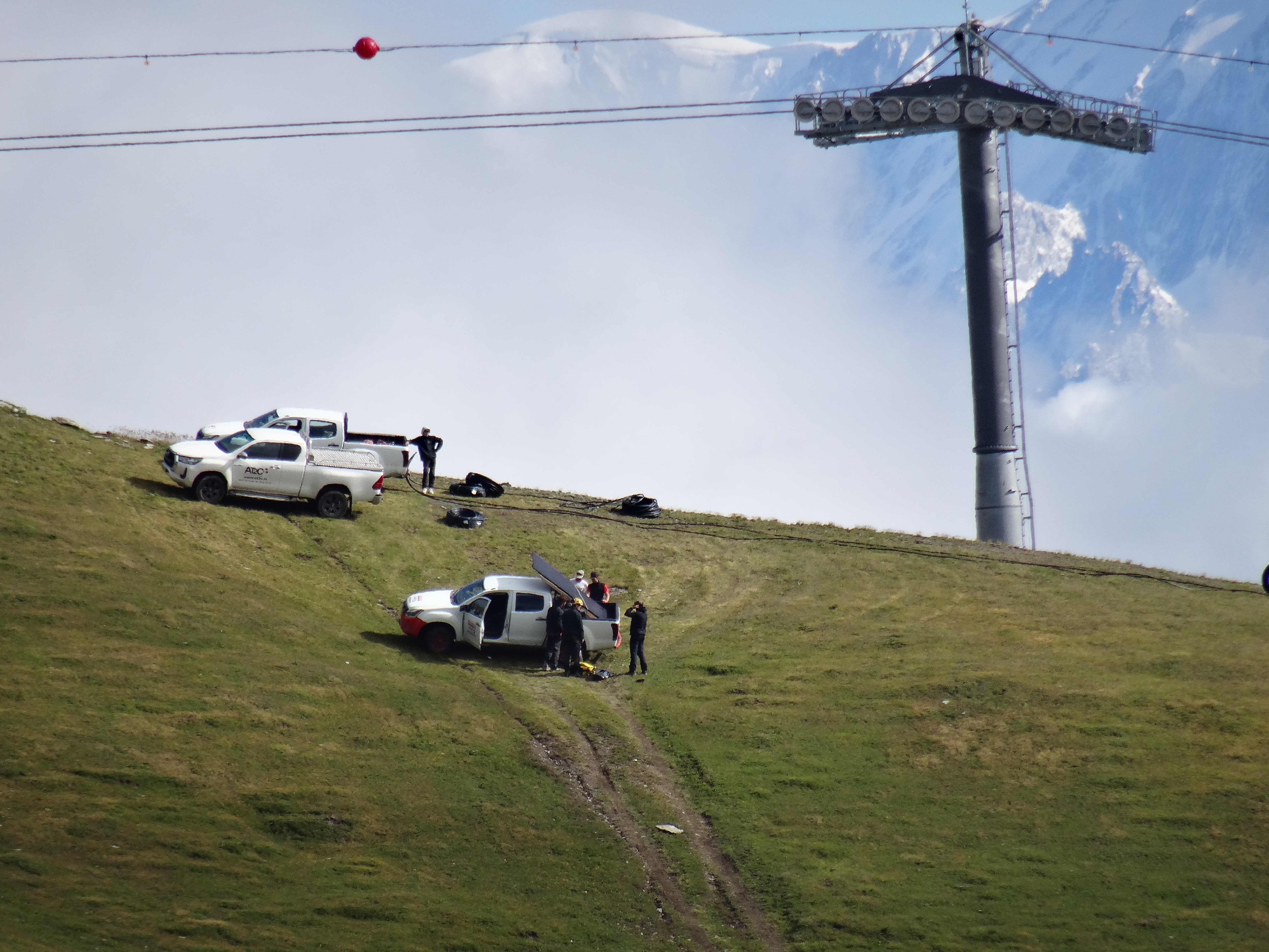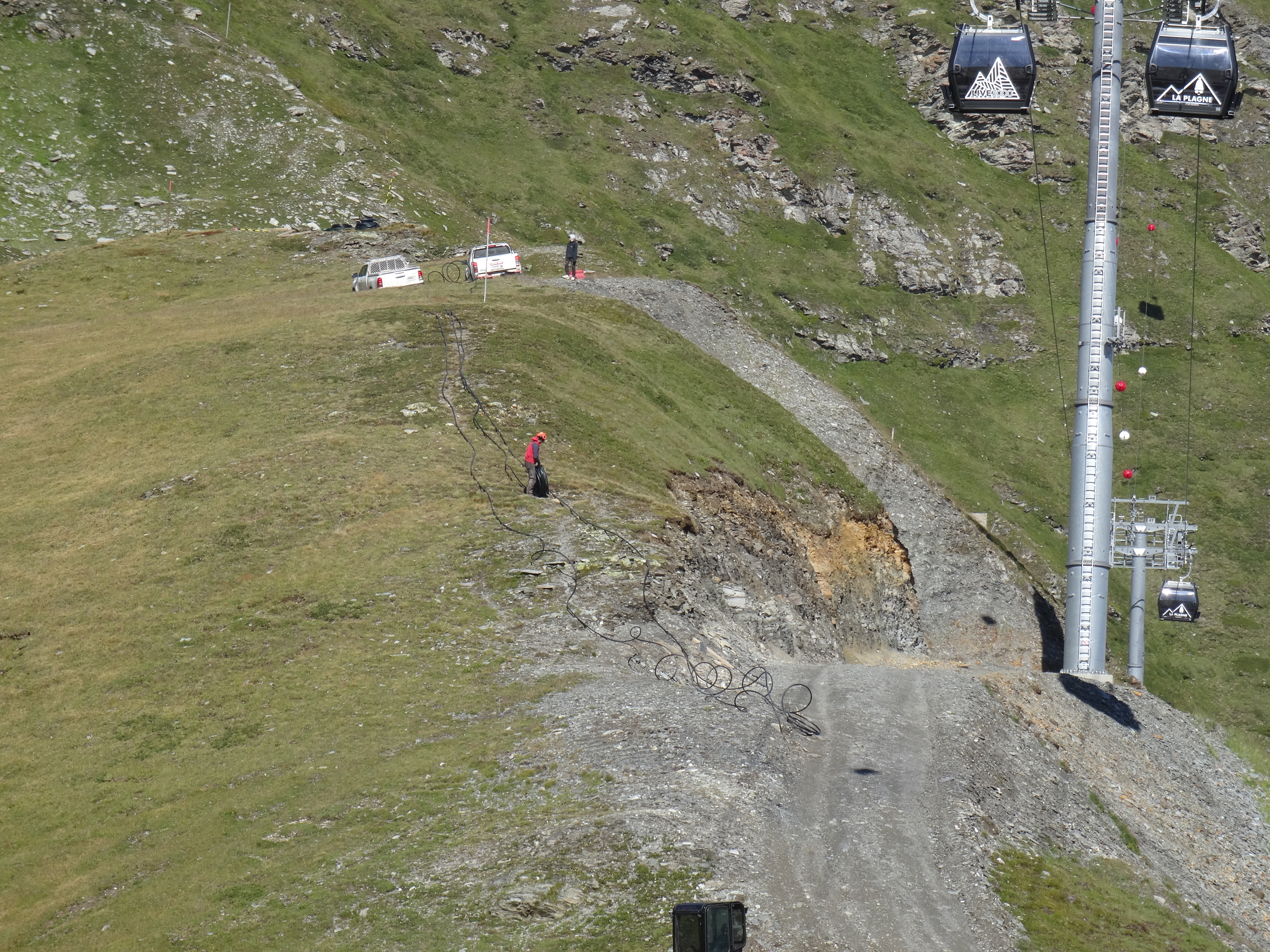 Il y a aussi de l'activité au col de la Chiaupe. Des câbles ont été descendus en voiture depuis RdM et ont ensuite été déroulés sous le premier tronçon de la TC des Glaciers. Aucune idée du but de la manœuvre.