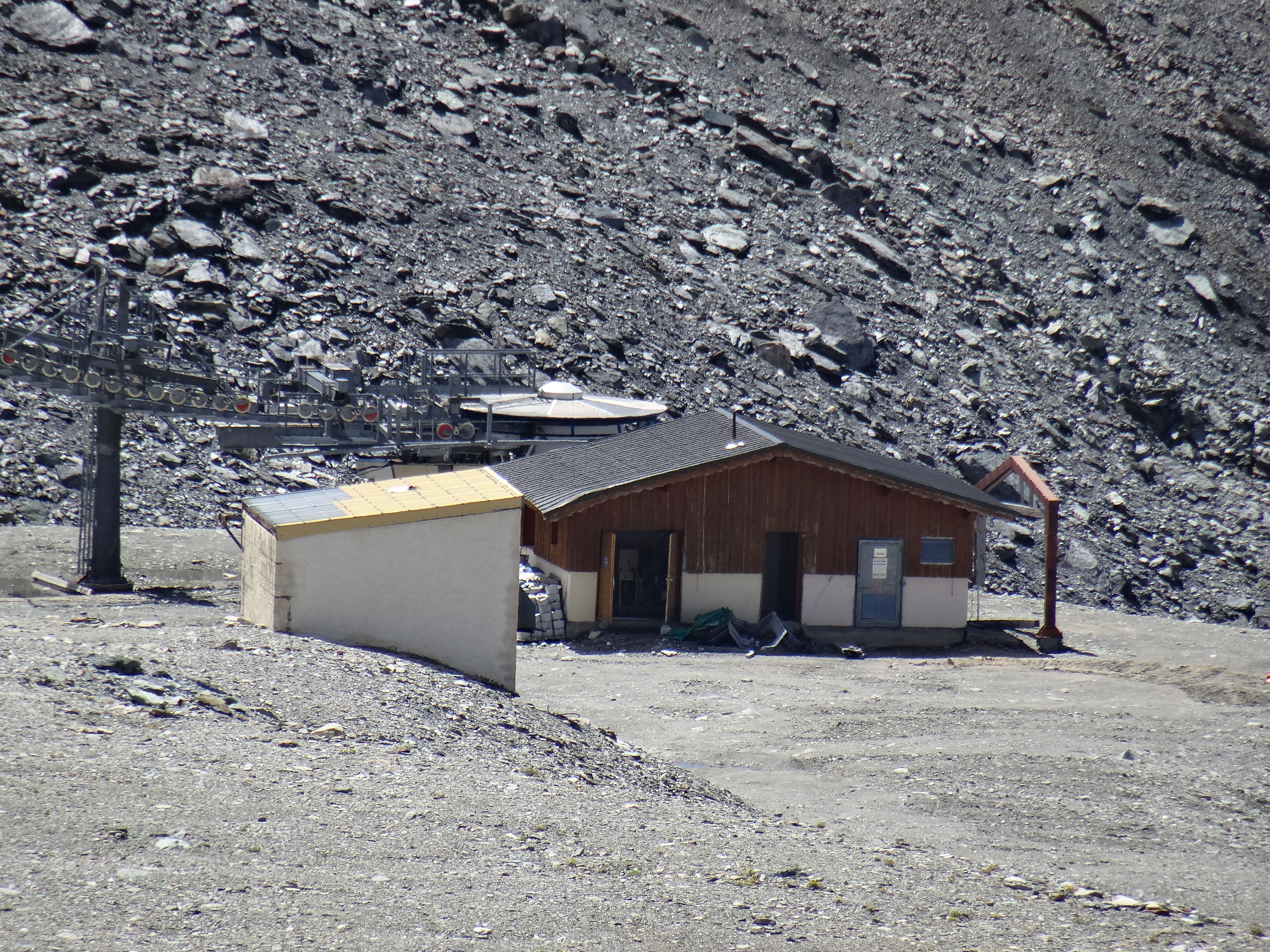 La gare amont n'a pas bougé depuis tout ce temps, hormis les installations (cabane et panneaux solaires) qui ont été visiblement très chahutés par les intempéries..