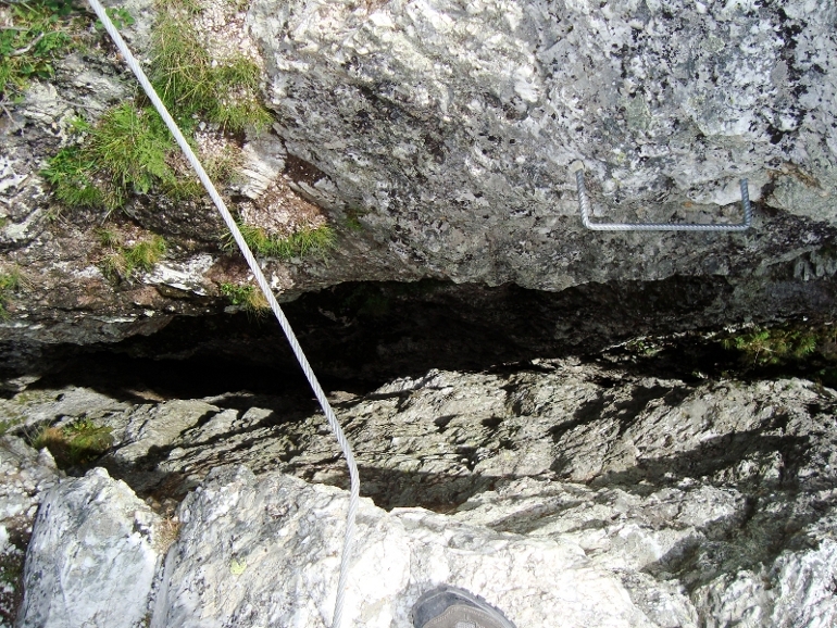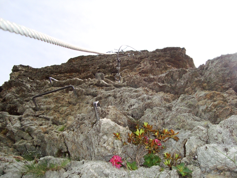 Après le sommet, traversée d'une falaise sur une vire équipée, pour rejoindre le sentier