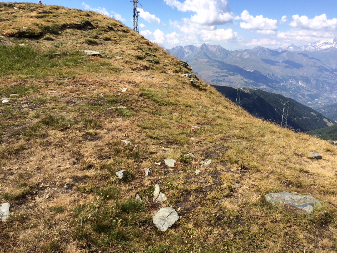 Bref là n'est pas le sujet. En juillet dernier quand je suis monté à la roche de mio, j'ai remarqué un piquetage noté G2, le même genre que j'ai déjà vu sur d'autres chantiers de remontées mécaniques. Je suppose qu'il s'agit de l'emplacement de la gare de départ de la future télécabine de Bellecote, enfin de la première partie la TC du Chardon.