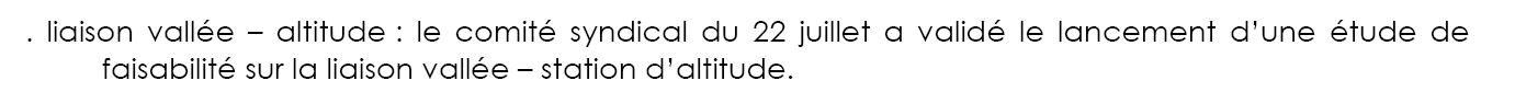René Allamand évoque le projet de liaison vallée- station dont l’étude réalisée par la société Dcsa sera présentée lors du conseil syndical du 04 août 2015.