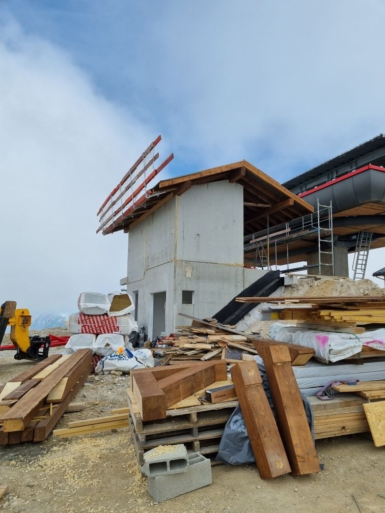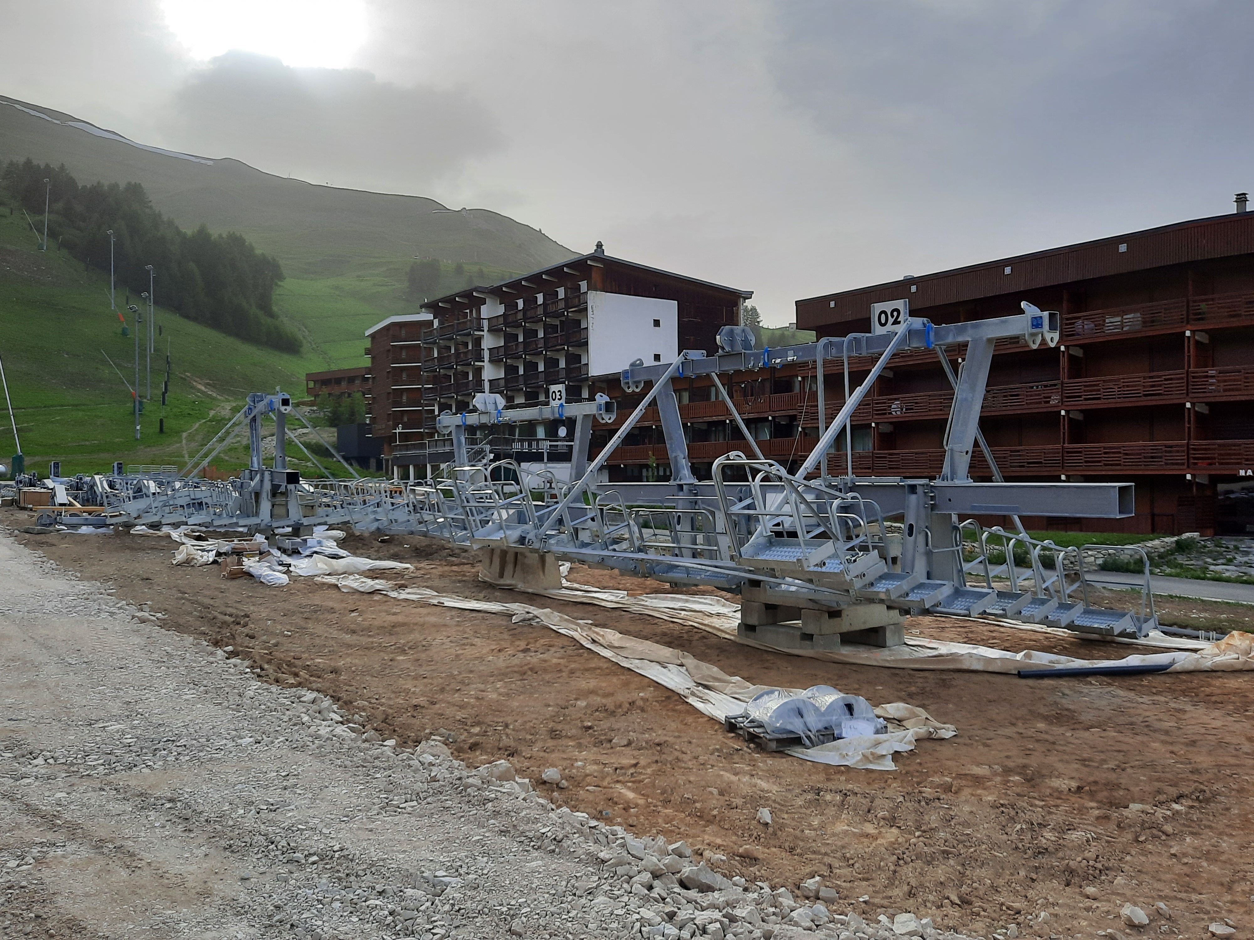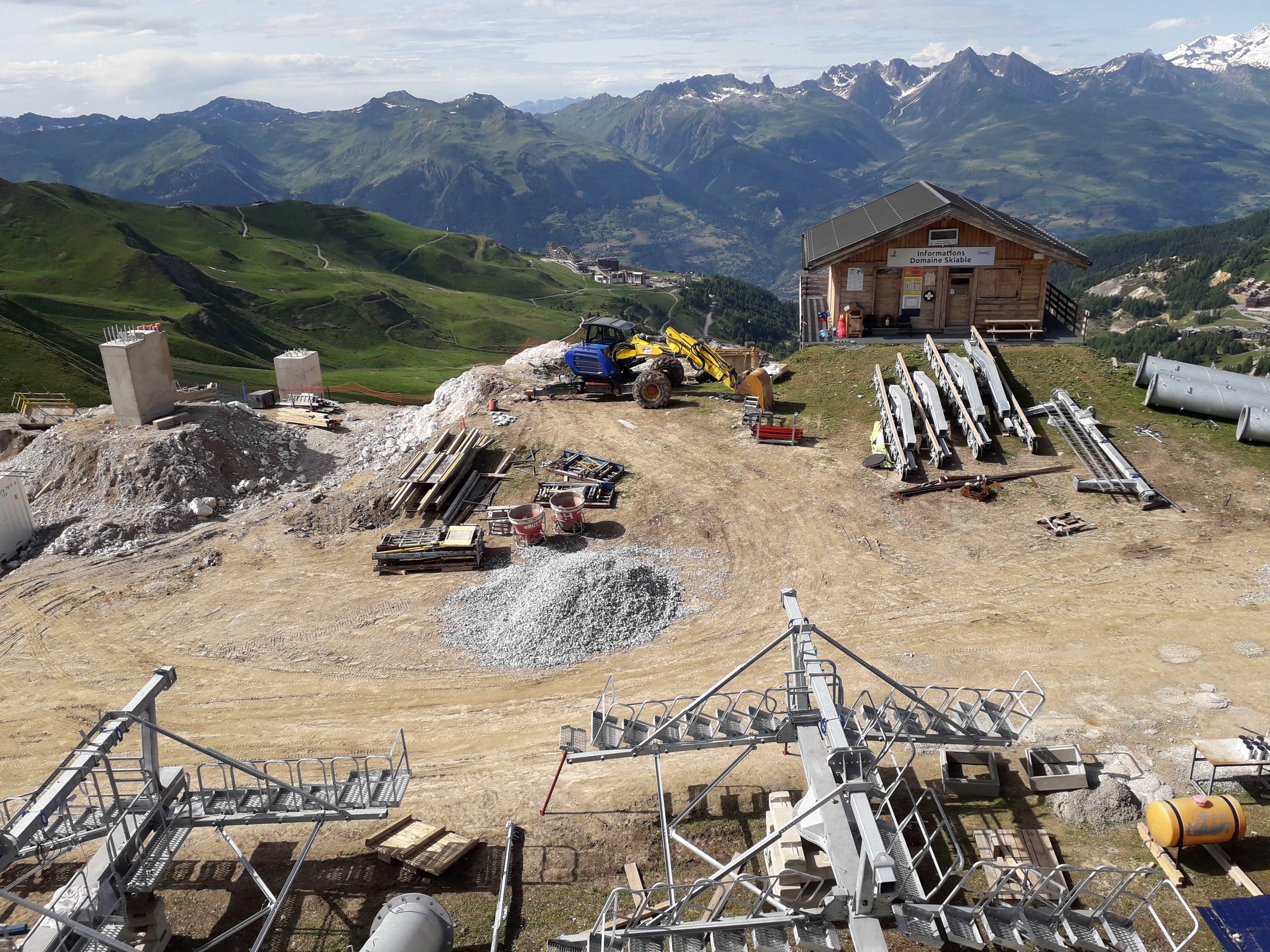 Je n'ai pas vu de début de montage de la structure de la gare d'arrivée (il y a bien une seconde structure en cours de montage à Plagne centre mais je pense que c'est une partie de la gare de départ).