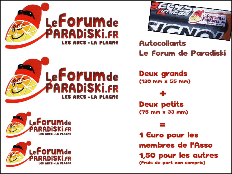 Le bureau de l'Association vous propose de promouvoir le Forum de Paradiski dans votre immeuble, sur votre voiture, sur vos skis, ou votre casque grâce à des autocollants.