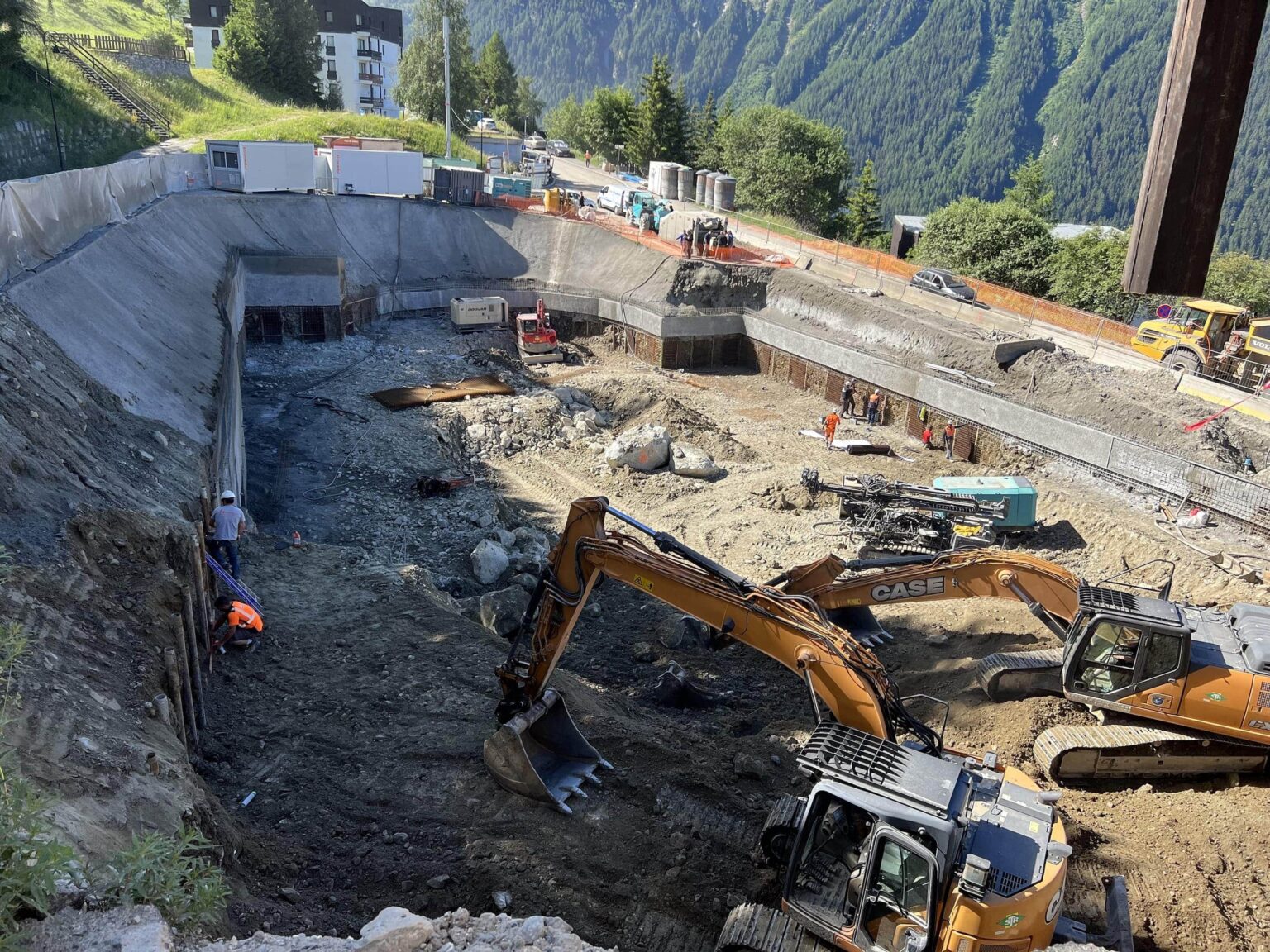 de passage ce week-end, j'ai pu observer l'avancée des travaux : le nouveau bâtiment va monter assez haut (surtout vu côté route d'arrivée ou sortie par les immeubles Arandelières, Aliet et Turia), et surtout utilise 100% du terrain ce qui est assez surprenant (il me semblait qu'il devait toujours y avoir une distance mini avec la limite de propriété). Tel que les choses se présentent, il n'y aura plus aucune place de parking en épi sur la droite en montant (pratique pour décharger ses bagages dans les immeubles), et le nombre de places de parking semble considérablement se réduire. Bref de véritables inquiétudes pour stationner, pour les piétons (trotoirs ou pas de trotoirs), mais aussi pour nos paysages et cette croissance effrénée avec du bétonnage à tout va.