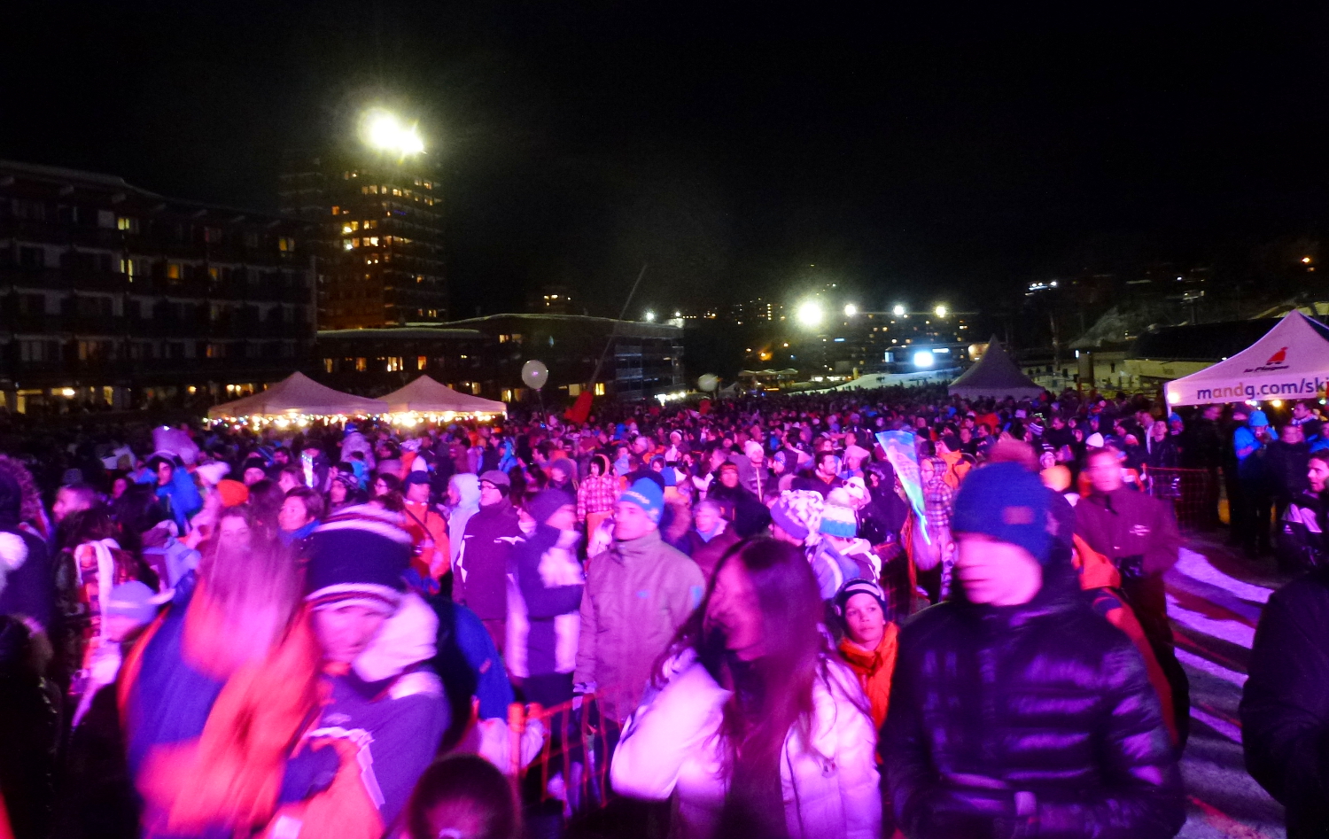 La photo est nulle, c'est juste pour vous montrer la foule. Je ne suis même pas sûre qu'on se rende bien compte du monde qu'il y avait ce soir à Plagne Centre... Impressionnant !