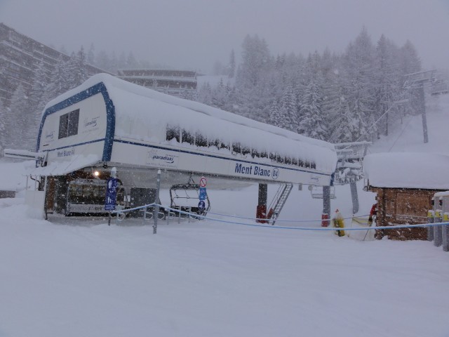 En fait Aiguille Rouge fermée : congères de 6m de hauteur !
