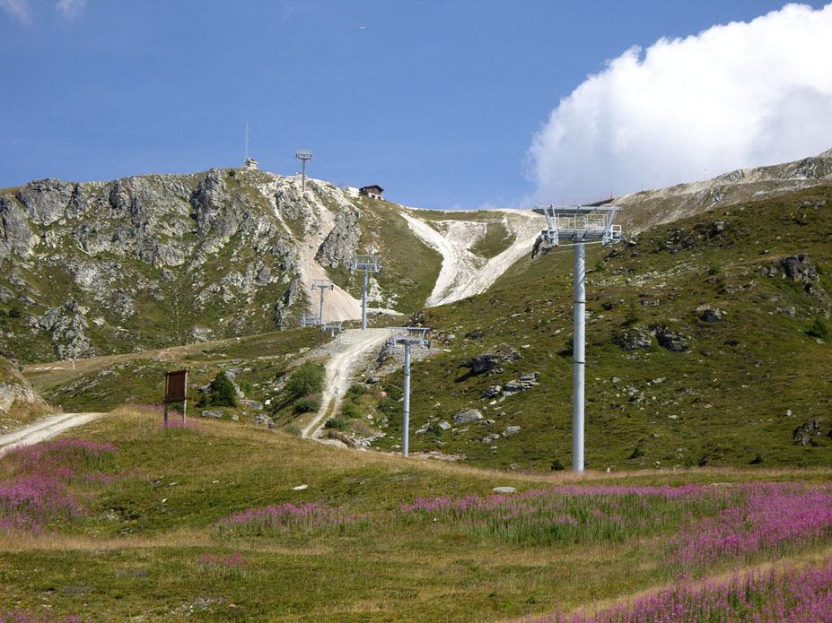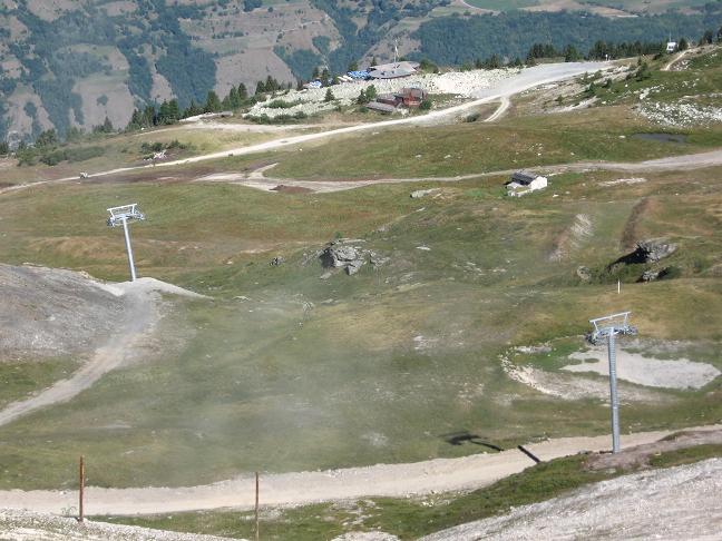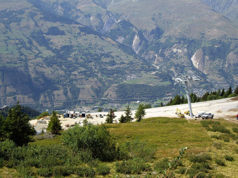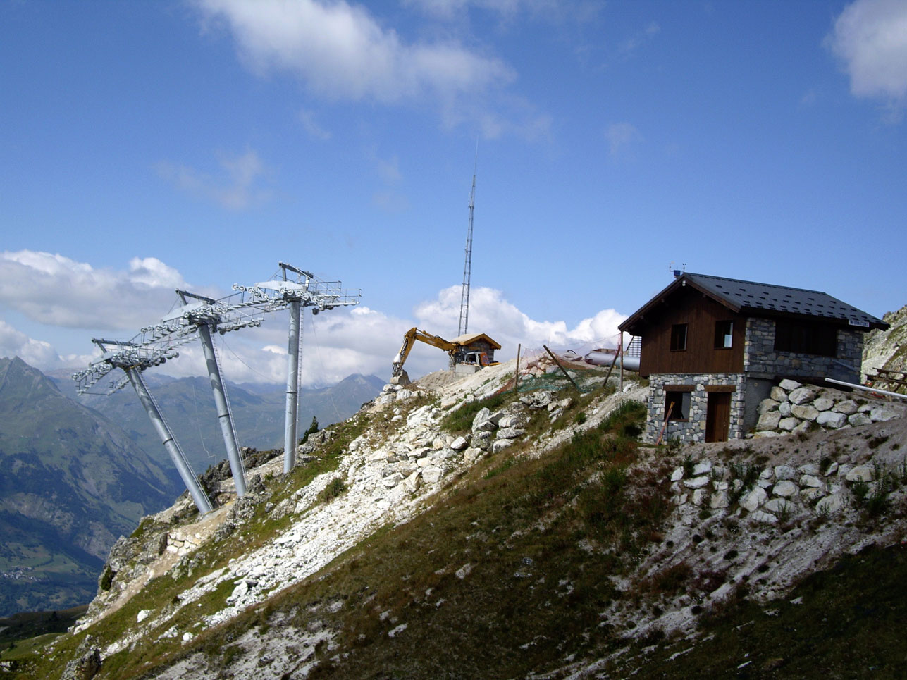 5 pylones montés dernièrement avec grues, l'hélico serait prévu pour le 5 août; qq travaux de pistes ponctuels : liaison sommet vagère villard et vers piste arpette, piste vagère.