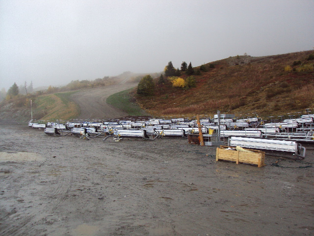 Les travaux de la gare aval avancent bien, en haut ils ont démonté un pylone (pas droit, paraît-il).Un détail important que j'avais oublié, le départ direct de la piste du bois de l'ours sera impossible où très réduit à cause d'une sorte de mur de soutènement construit de l'arrivée de l'ours vers la piste du fond blanc.