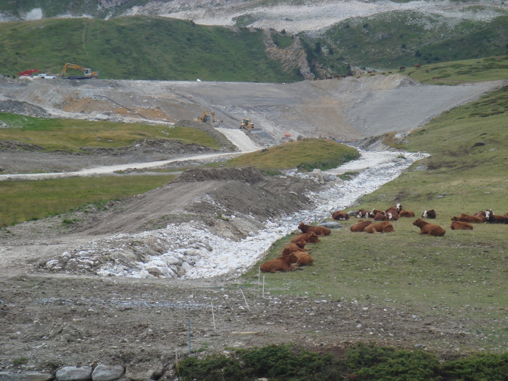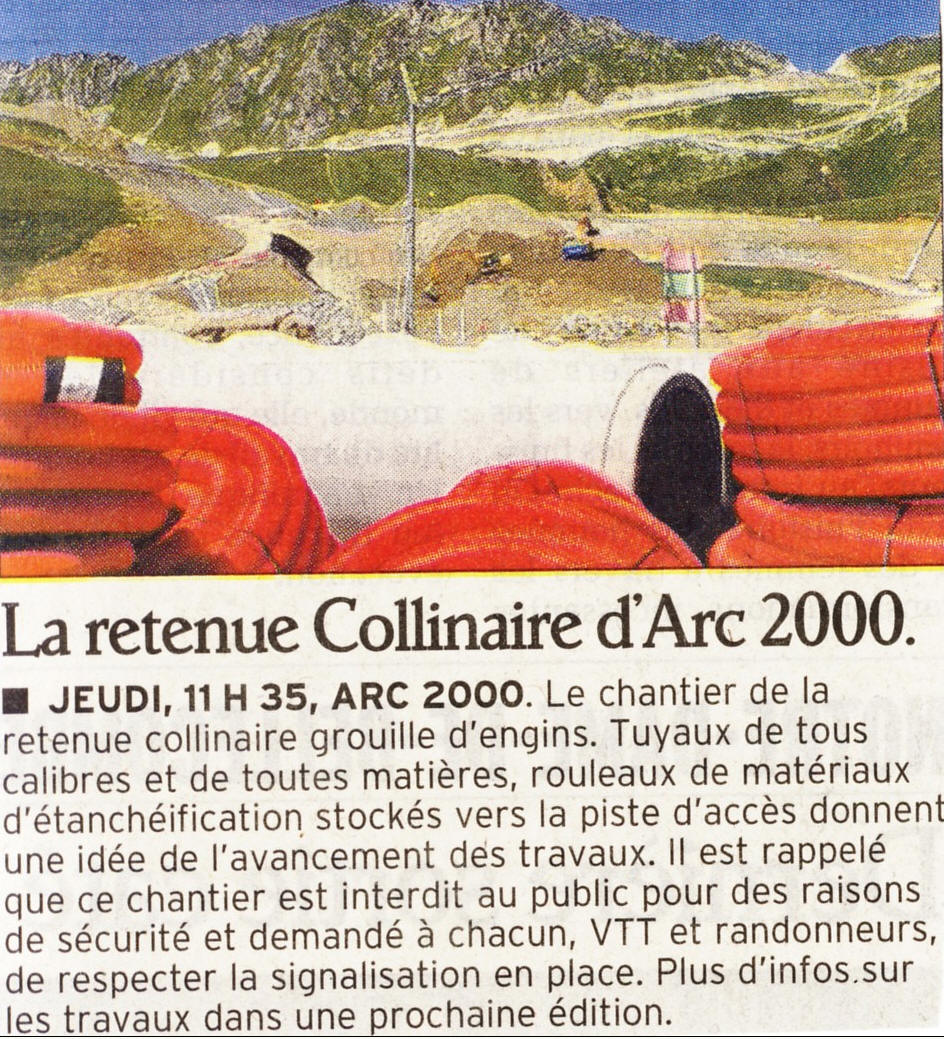 Les travaux d'étanchéité sont en cours de finalisation pendant que l'usine à neige est en construction. Les engins commencent déjà à redescendre. la retenue semble avancer à bon rythme. pour l'eau en 2009, j ne sais pas bien non plus d'ou elle va venir...