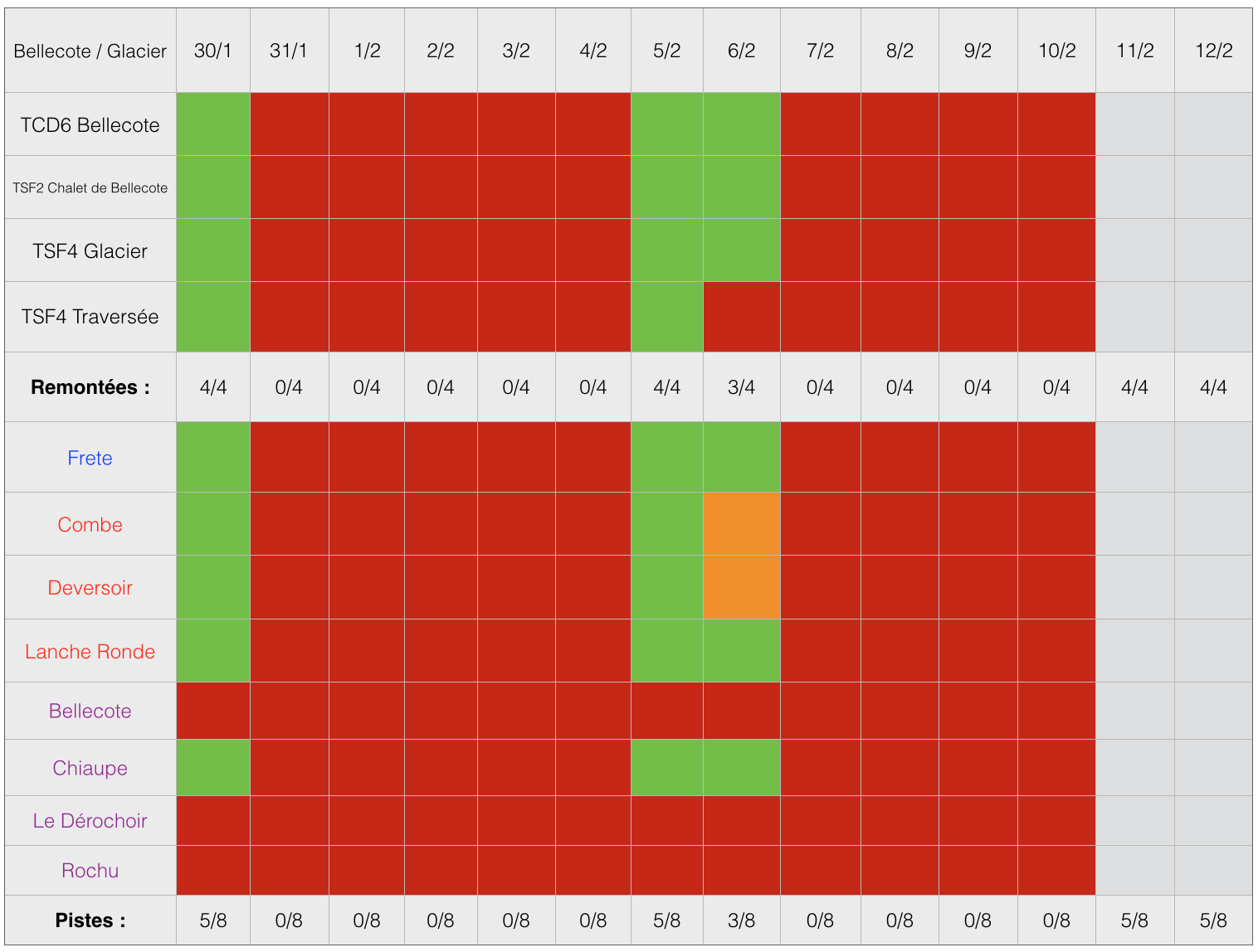 Je confirme, y étant aussi à cette période la ...k3v95 a écrit :Durant ma semaine du 23 au 30/1, il a été ouvert tous les jours car conditions optimales