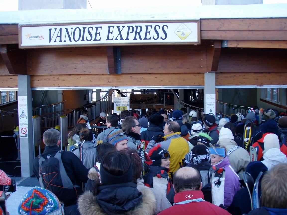 Le lendemain, nous avons eu la chance d'être les derniers pris aux letchoums, sinon, nous étions contraints de descendre à Bellecote pour reprendre les colosses, sans être sur de monter en raison de l'heure et du nombre de skieurs se dirigeant rapidement vers les colosses.