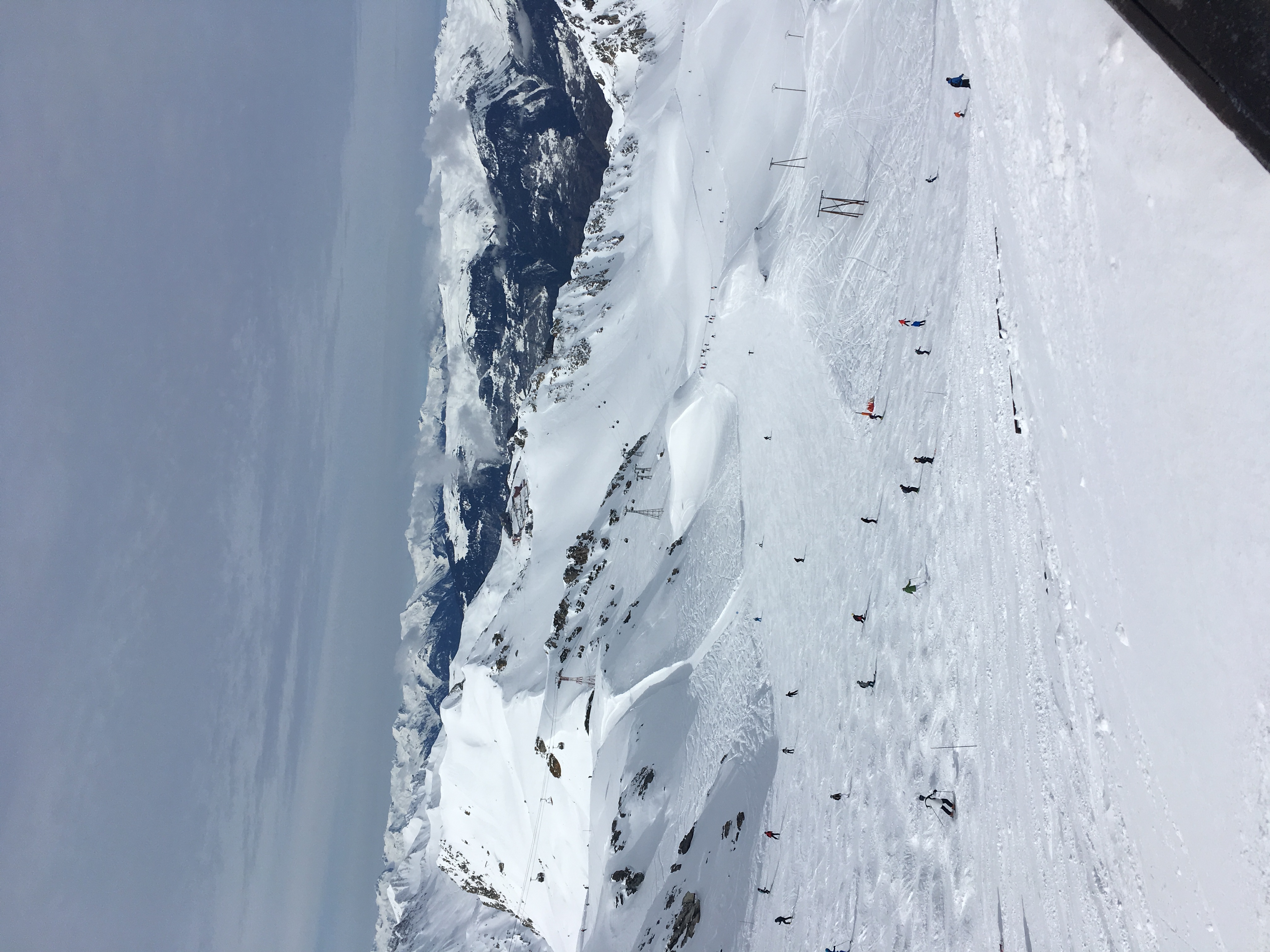 Dans ces conditions le Glacier représente un intérêt limité puisque seules les pistes Frête, Combe et Chiaupe étaient ouvertes ... d'autant plus qu'il fallait attendre (très) longtemps aux télécabines et ensuite emprunter de nouveau un télésiège sans parler qu'il fallait également reprendre les télécabines pour revenir, bref le rapport temps d'attente/remontées/ski n'est pas très avantageux. On a quand même bien aimé la Chiaupe (faite sans les plus jeunes) où il n'y avait pas grand monde alors que la neige y était restée agréable.
