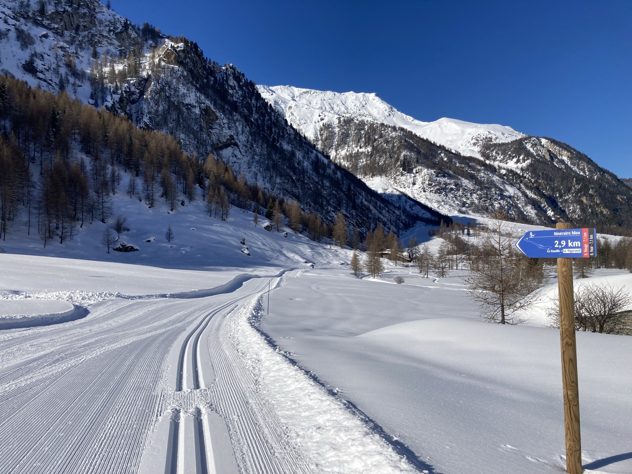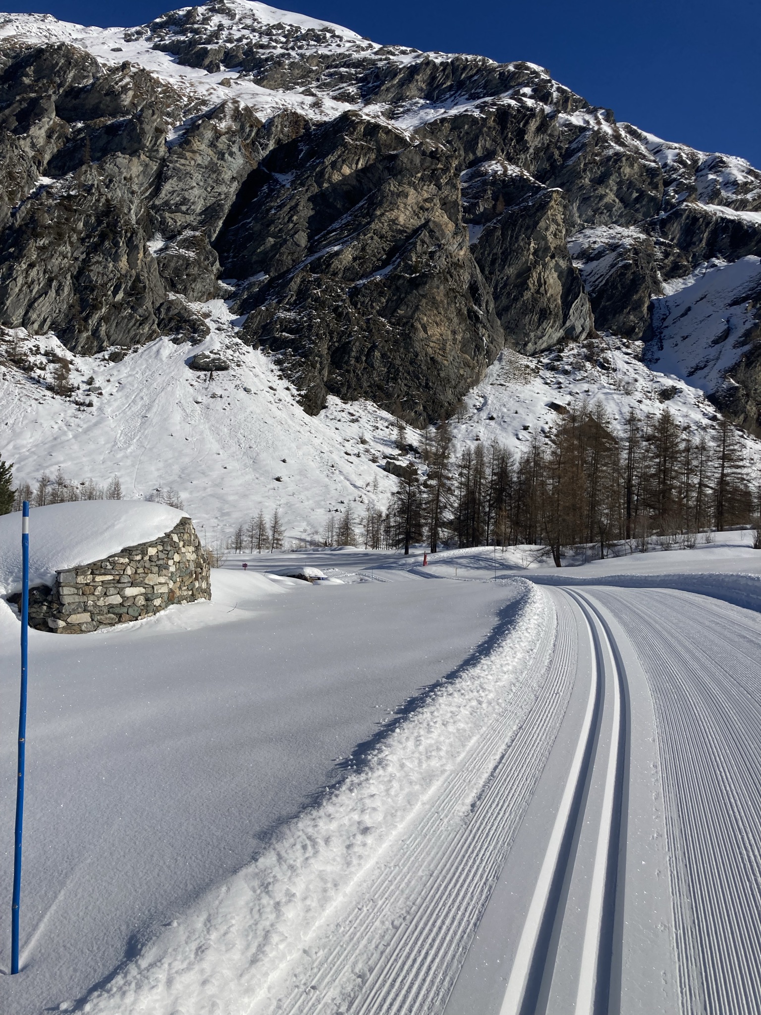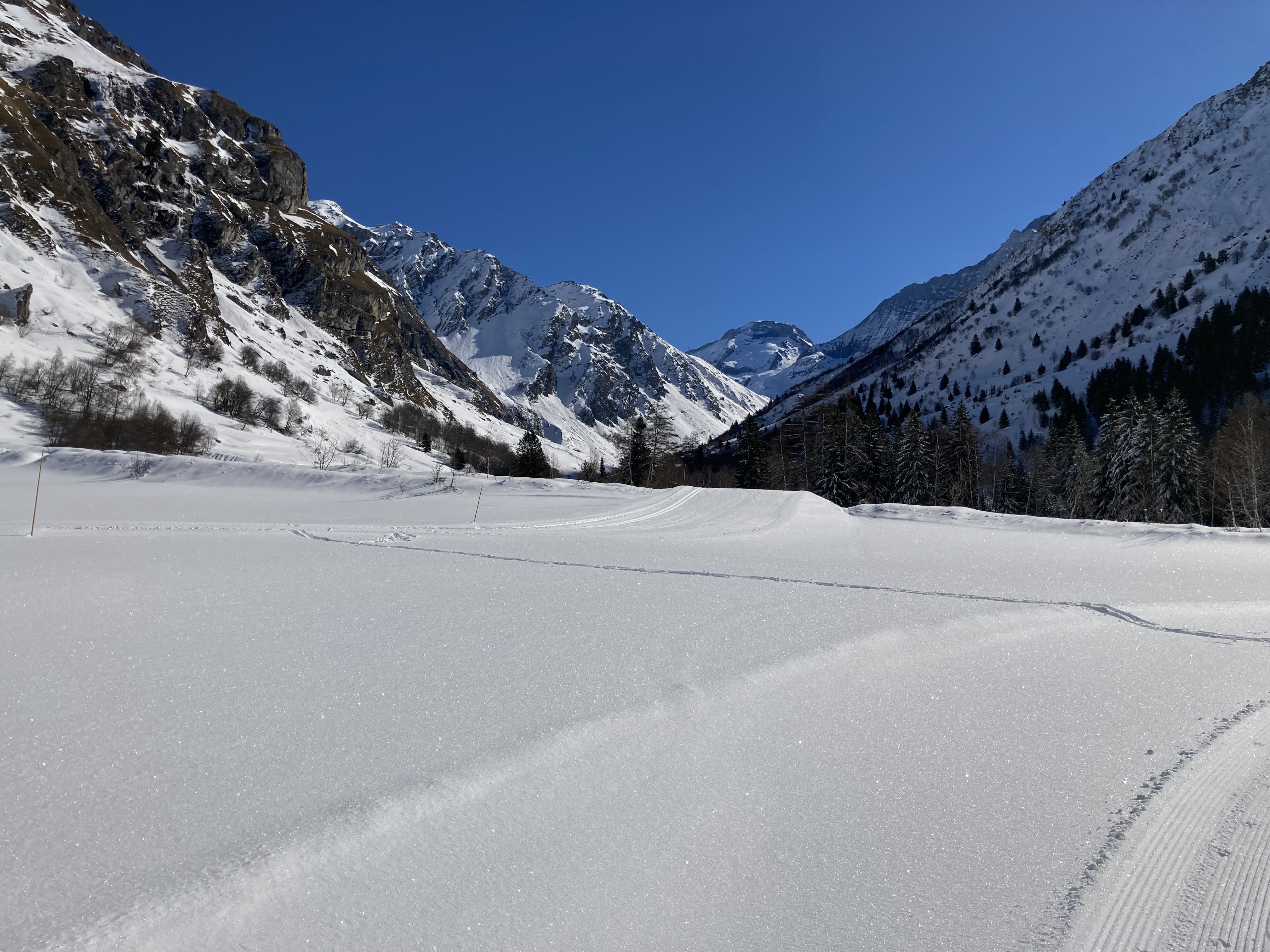 Cependant à cette période de l'année il y a un bon regel au sol même si la température en air libre est largement positive. Du coup les pistes ont été bien travaillée et restent en pas trop mauvais état.
