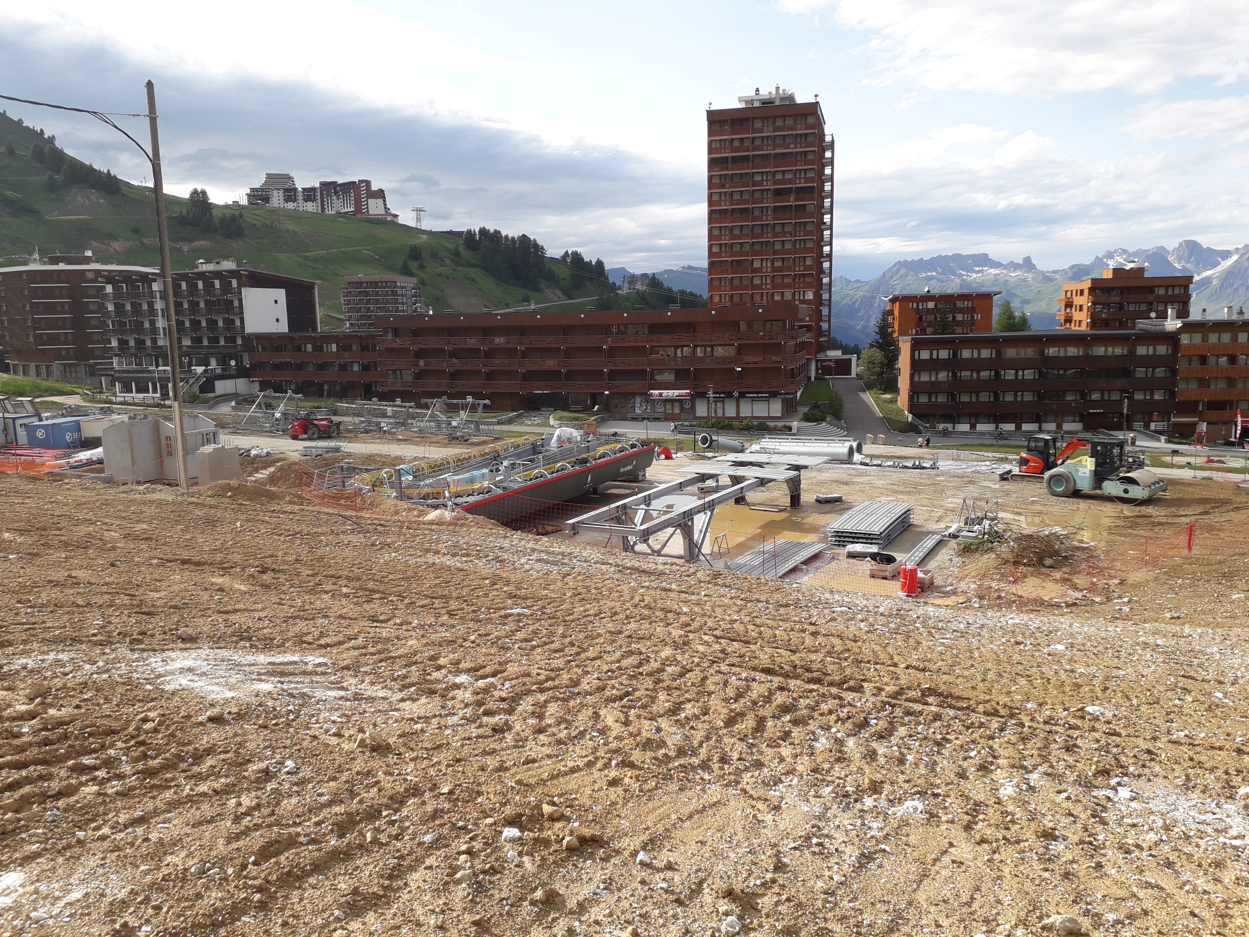 Je n'ai pas vu de début de montage de la structure de la gare d'arrivée (il y a bien une seconde structure en cours de montage à Plagne centre mais je pense que c'est une partie de la gare de départ).