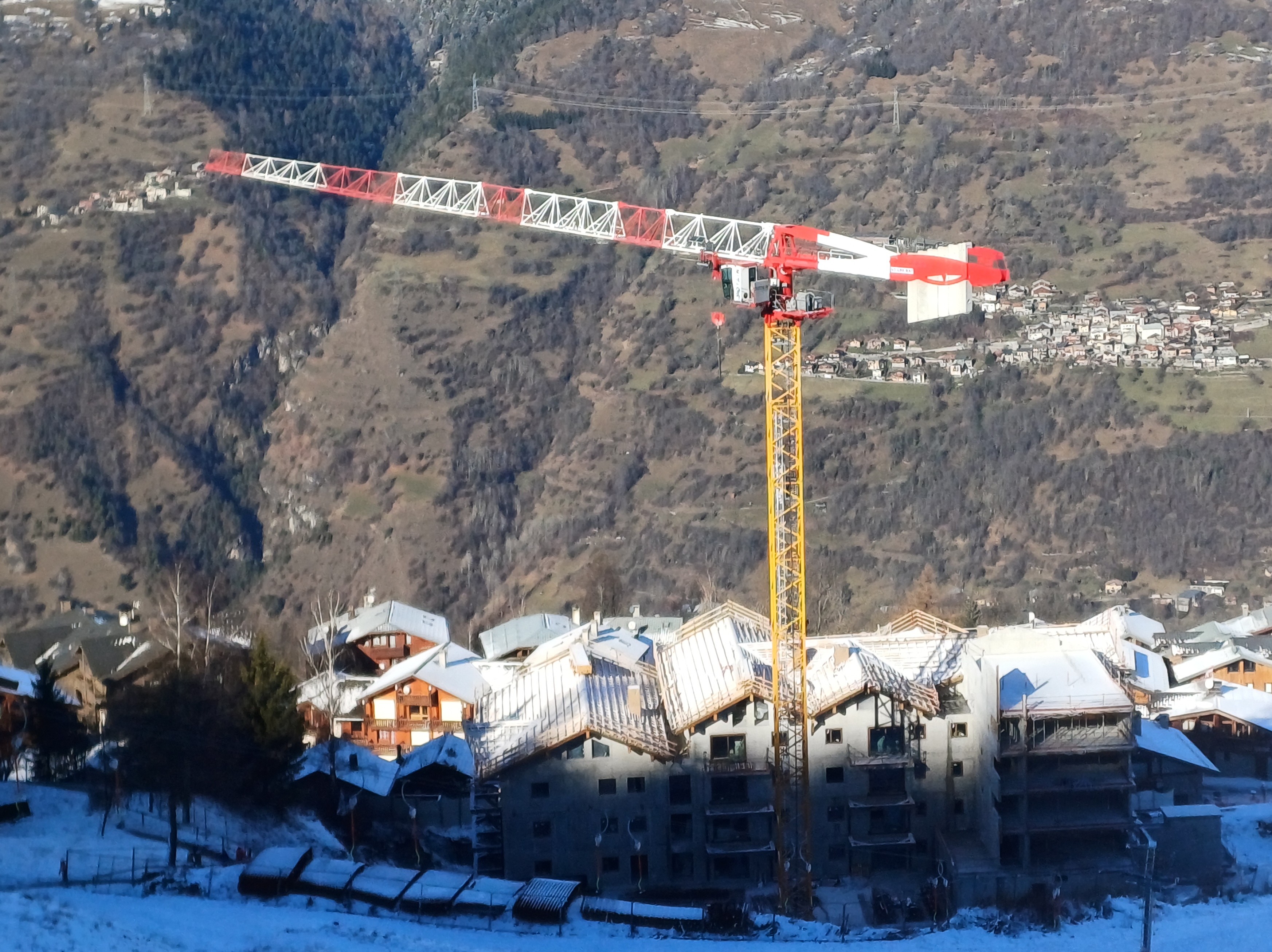 La grue Potain est montée; il ne reste que les contre-poids à mettre.