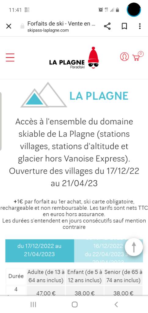 Entre le 10.12 et après le 21.04 plus de forfait saison. 292 € la semaine