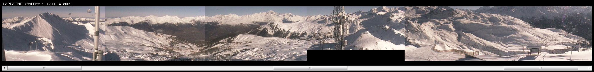 En regardant la météo sur le site de Méribel (http://domaine-skiable.meribel.net/meteo.html), je suis allé faire un tour par curiosité vers les webcams... il y en a 12 sur le domaine dont 2 panoramiques à 360°. J'ai cliqué sur l'une des 10 classiques. Et voilà le résultat...