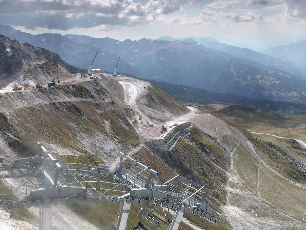 Vu de la webcam d'Arpette le mur de soutenement parait énorme.