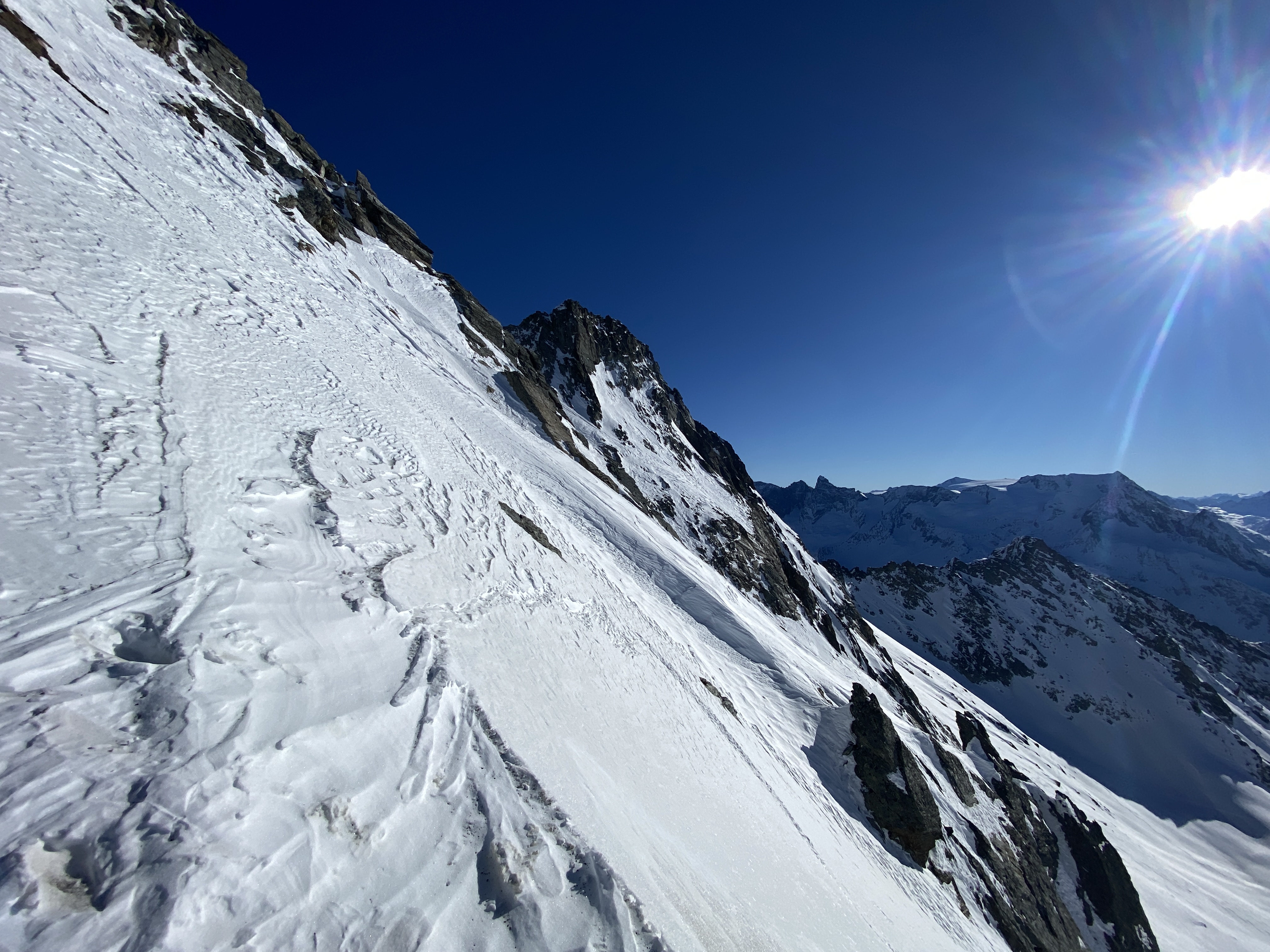 l'accès n'est pas si simple en ce moment même si à force de faire la trace la crête entre les 2 glaciers devient un peu plus praticable perso je réfère mettre les crampons il reste encore quelques dalles glacées et sans neige assez difficiles.