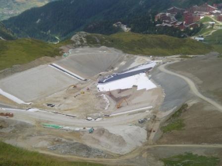 Someone who was in Les Arcs recenlty took these photos of the new 'pond' being built to take water from the thawing snow use for snow making in the Winter. From the size of the diggers in the bottom this is one very large 'pond'