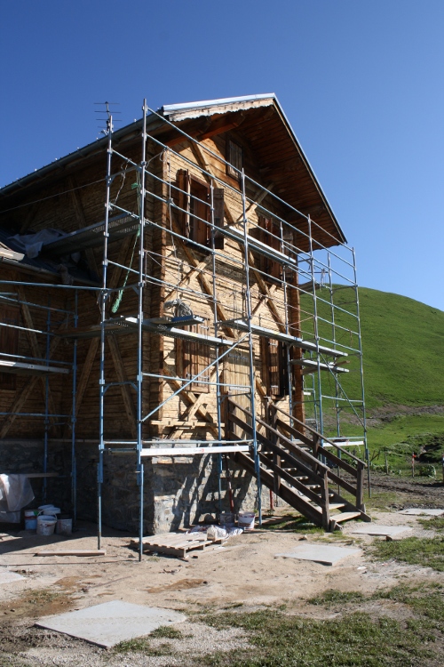 Tout à fait : la partie "hiver" à l'arrière a été détruite et remplacée par une extension communiquant avec le vieux chalet de 1890, qui outre la conservation de sa structure bois extérieure sera également rénové à l'intérieur. Mise aux normes intégrale, ajout de douches, sanitaires et wc, chambre handicapé, logement gardien, dortoirs en box, nouvelle partie "hiver" etc... profitant de la vague de subventions accordées par la région, comme pour de nombreux autres refuges du coin : col de la Vanoise, le Saut à Méribel, Nant du Beurre à Naves, prochainement le refuge de la Glière, Plaisance...