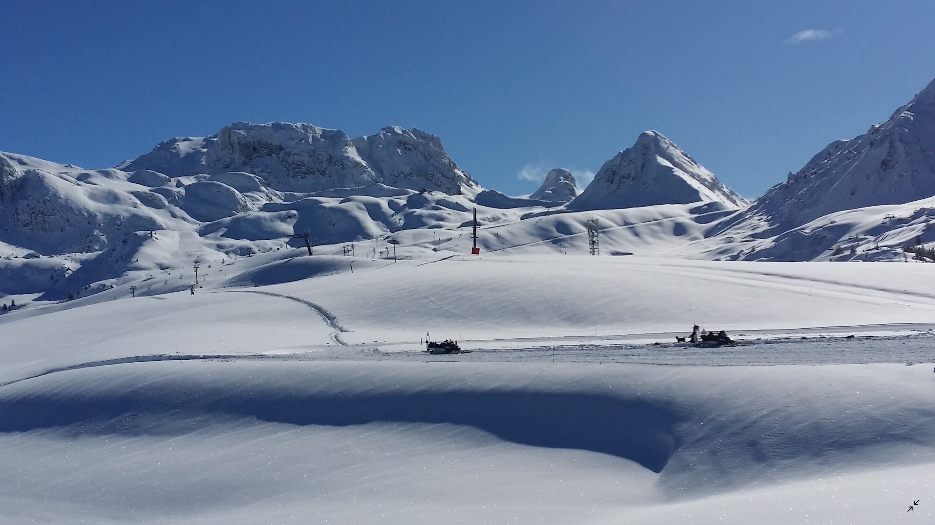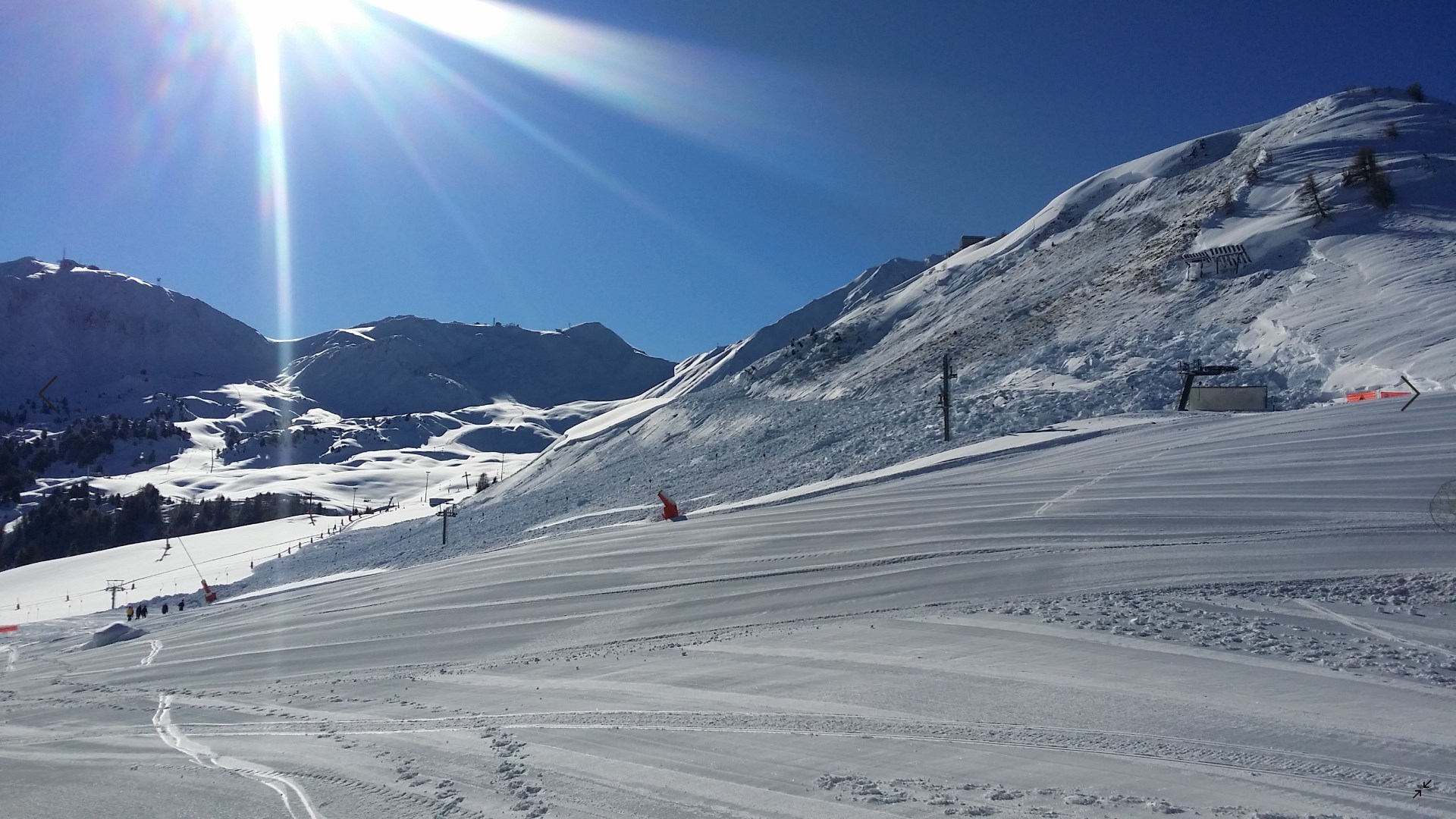 Arrivé sur place et bonne surprise:quelques pistes damées !Ours,liaisons BP Bellecote,stade et paraît il liaison Aime 2000 La Roche. Les critiques de Noël ont porté !