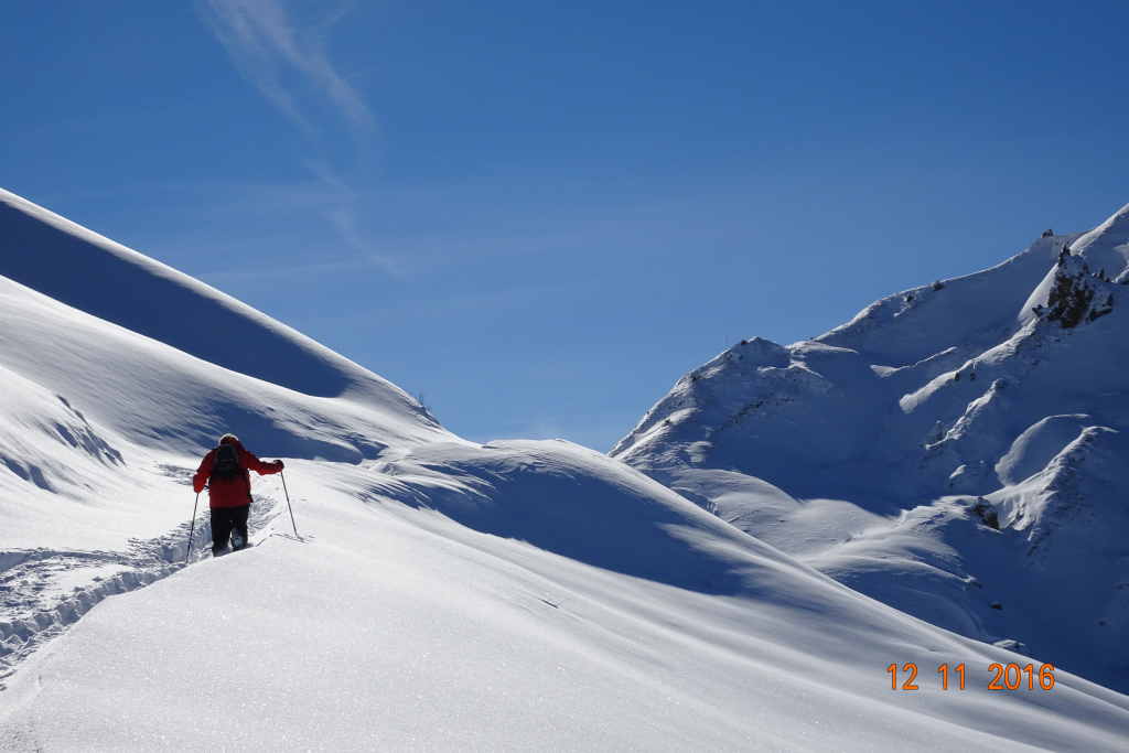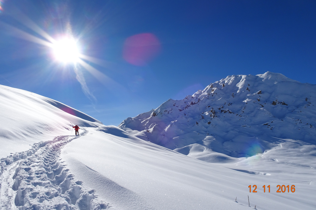 Oui il y a pas mal de neige, mais au col des Forcles à peine quelques cm de neige et également au Dou de Praz où on peut voir de la terre, œuvre du vent rapé...