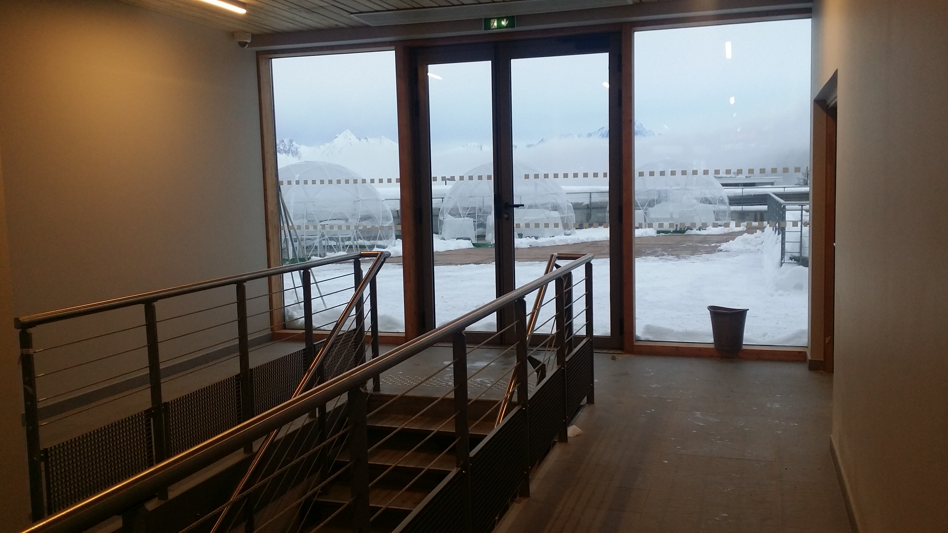 Voici quelques photos de l'espace Pierra Menta (puisque ça s'appelle comme ça) prises du sol et du télémétro. Sur les photos on peut voir le hall d'arrivée/départ des cars et navettes et comme prévu un panorama de fou. Il reste encore deux ou trois bricoles à terminer (on est à La Plagne) mais bien avoué que cette nouvelle structure est une réussite.
