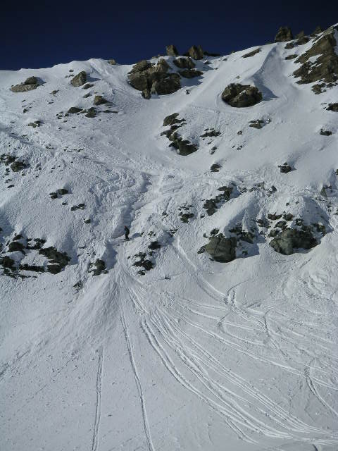 Globalement c'est une belle descente plutôt facile et donc très accessible au gens ayant un peu skié en hors piste. L'utilisation de fats pas trop longs rendra les choses encore plus faciles.