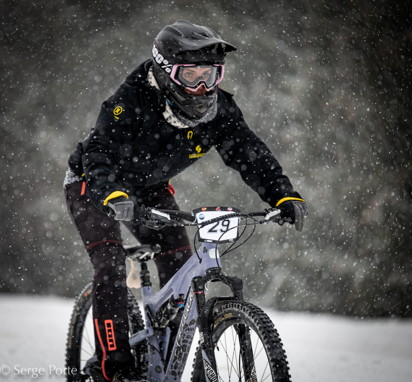 les pneus cloutés ou vissés sont interdit sur ce genre de course en masstart donc pneus normaux de VTT DH avec gros crampons