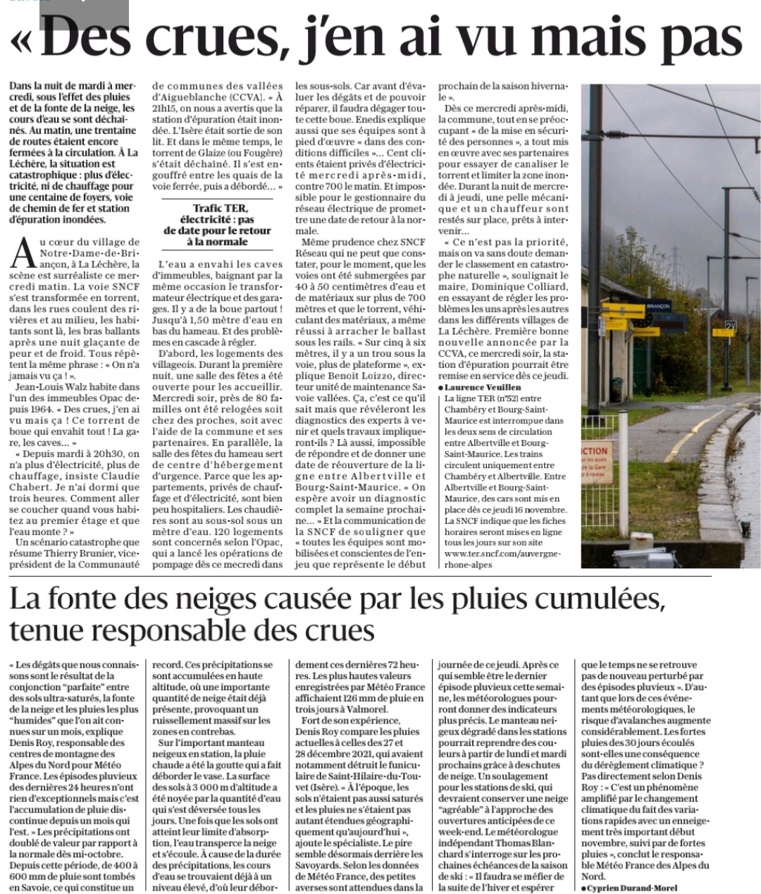 Un article du DL de jeudi, reprenant les dégâts occasionnés, notamment à la gare de Notre Dame de Briançon.
