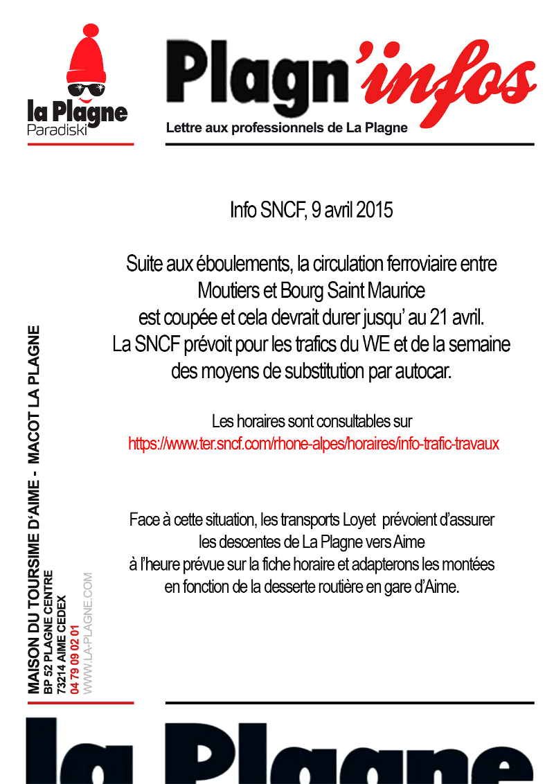 Et pour ceux qui arrivent ou repartent en train, les horaires sont sur le site de la SNCF voir lien ci-dessous, ligne 52 - Lyon - Bourg Saint Maurice