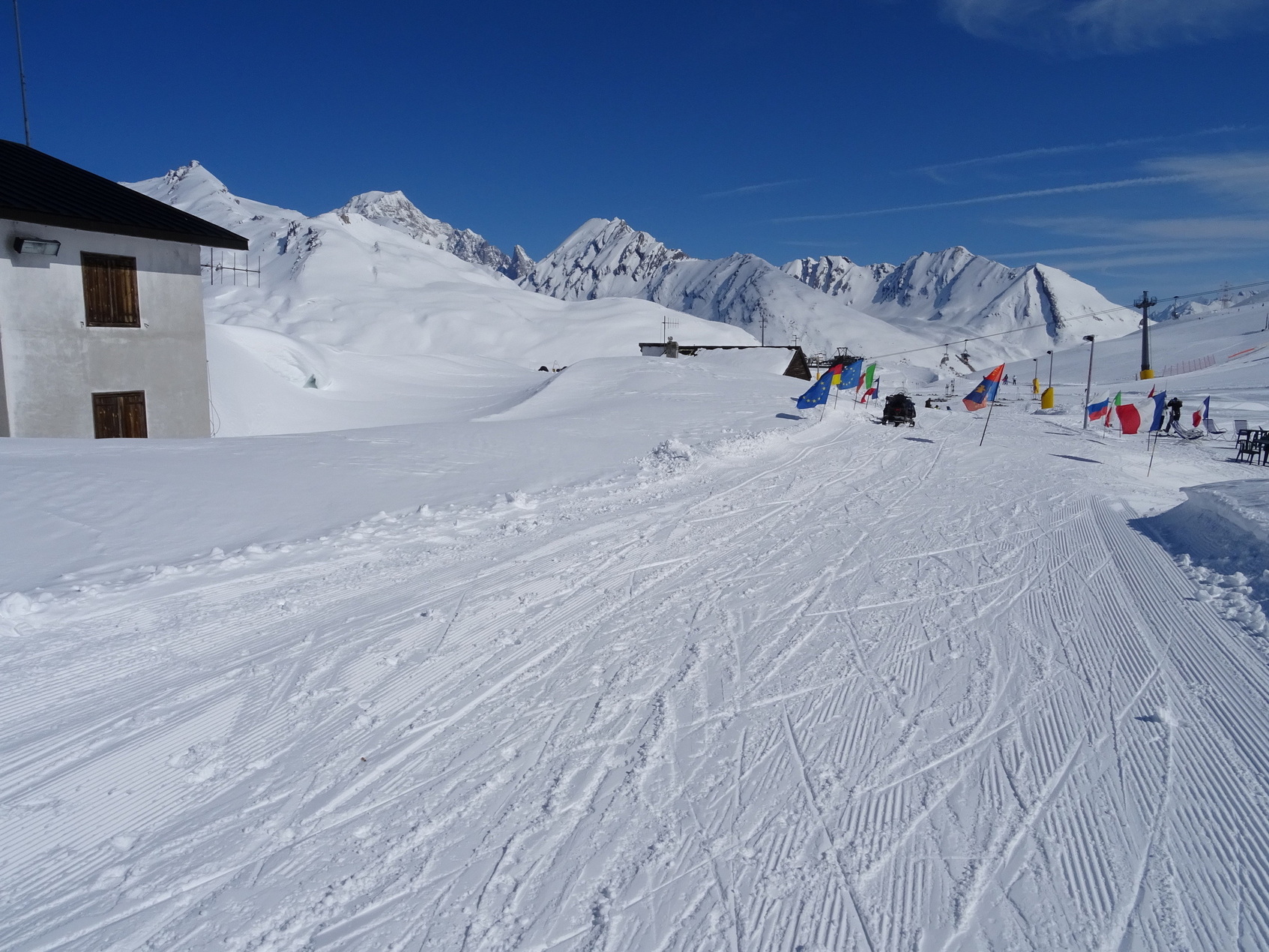 En fin de saison, la neige des pistes orientées Nord au dessus du Col du petit St Bernard est extra.
