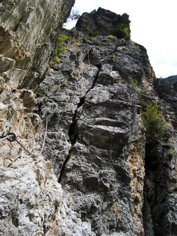 La suite dans la via ferrata - ici au départ, facile et ludique avec beaucoup de prise naturelle Augmentation progressive des difficultés... ...à mon gout, l'attrait principal de cette via - avec le panorama bien sur, et aussi une marche d'accès réduite (quoique en ce moment, coule l'eau de fonte dans le torrent qu'il faut traverser à gué... pas toujours évident)