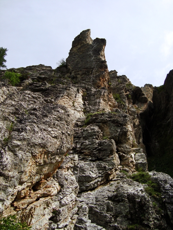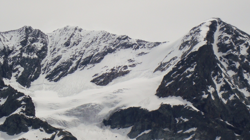 Vu d'en dessous... alors que le soleil semble nous quitter définitivement, le jour blanc s' installe Au sommet de cette arête... un grand pas pour franchir la faille !! Après le sommet, traversée d'une falaise sur une vire équipée, pour rejoindre le sentier Les dégats d'une avalanche, dans le couloir que traverse le chemin de retour... Fin vers 13h. Des nuages commencent à accrocher le "Pourri"... Il tombait des cordes en début de soirée. Faut bien viser pour en profiter, de ce printemps... pourri.