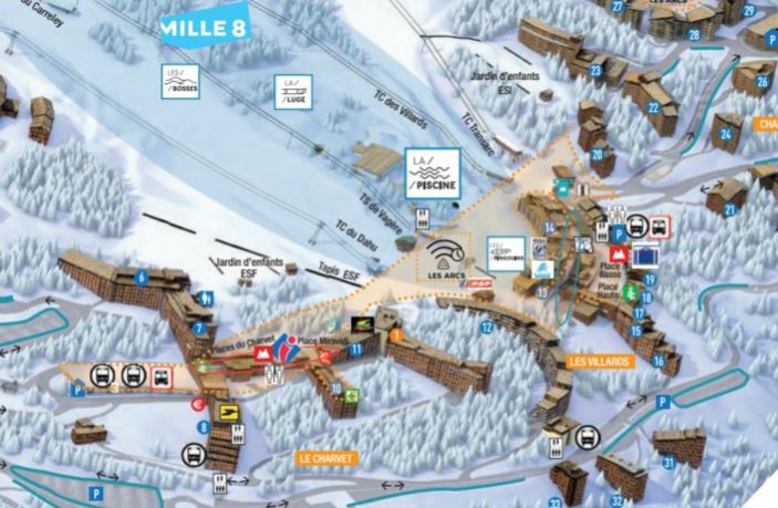 Pour le reste, concernant un "WiFi Public", les derniers plans édités montrent des zones de Wifi (zones orangées sur les plans) qui seraient disponibles de 9h à 19h à Arc 1800 et Arc 1600. Rien a priori pour 1950 et 2000