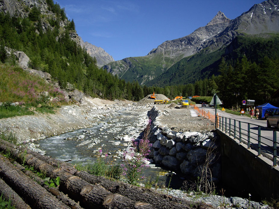 Des photos des travaux de la route et de l'aménagent du lit du Ponthurin à Pont Baudin ainsi que du refuge de Rosuel.