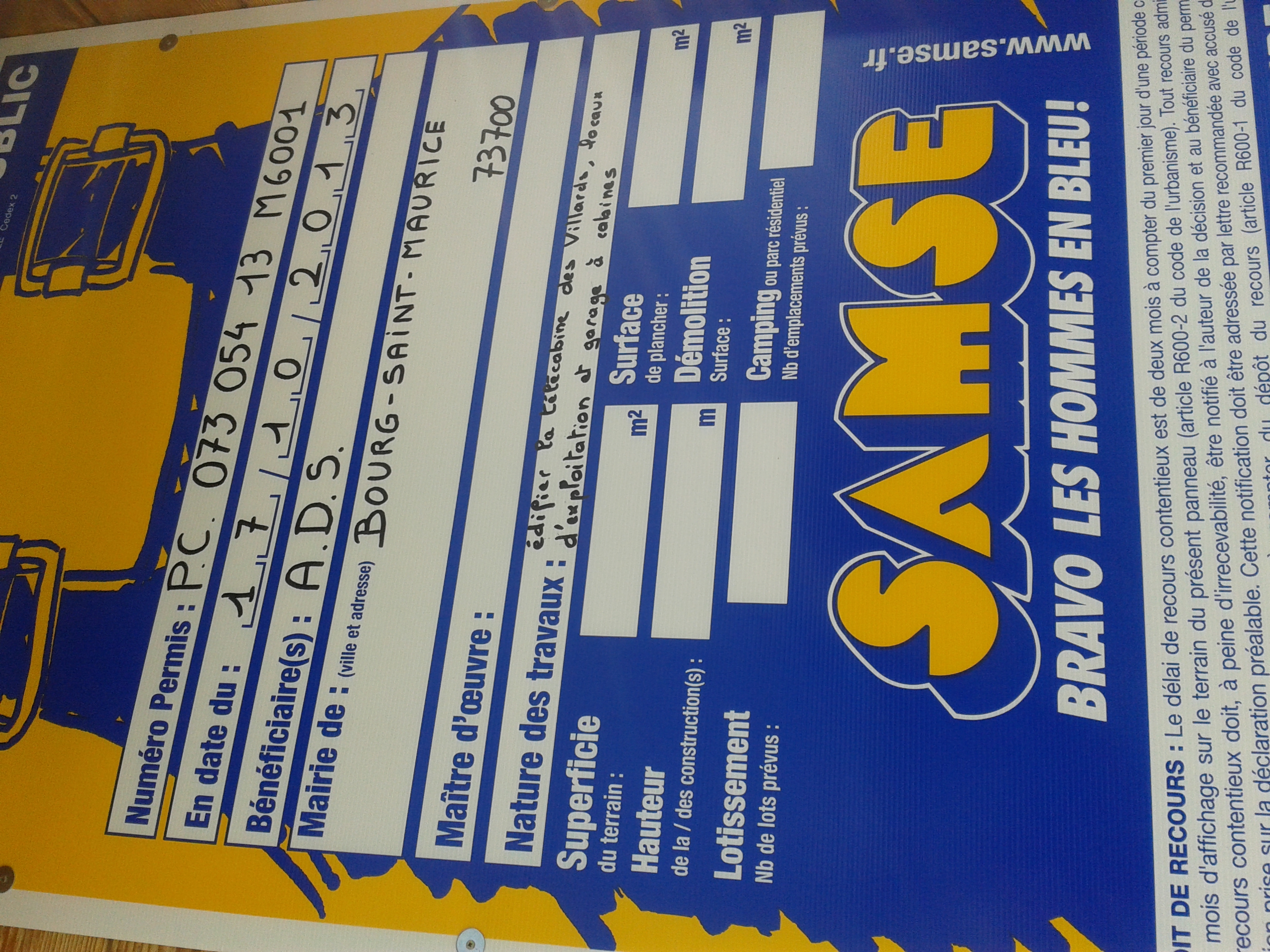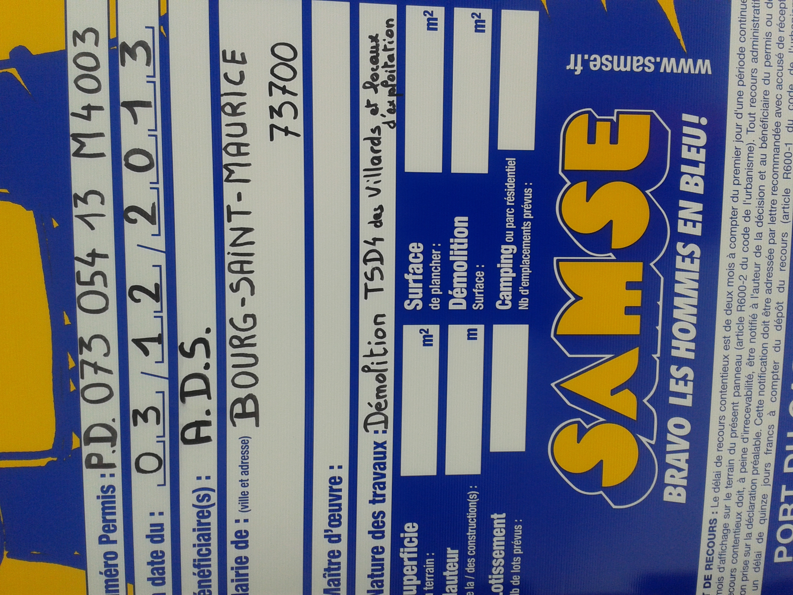 Etant en stage au Arcs jusqu'au 16 février, je me suis aperçu que plusieurs permis ont été affichés sur la cabane de contrôle du TSD Villards :